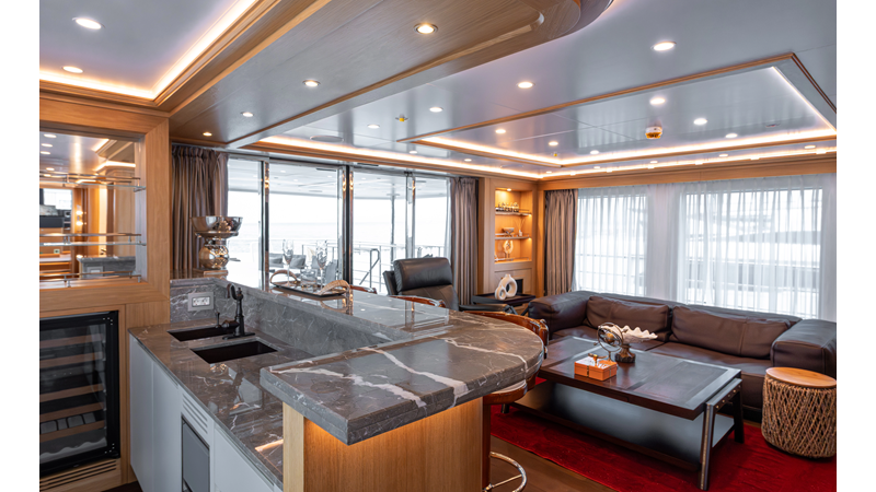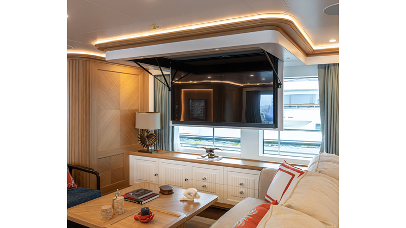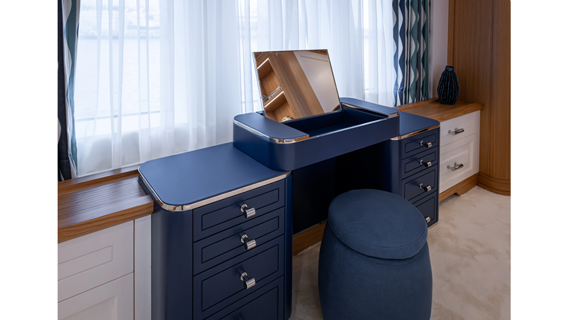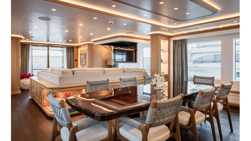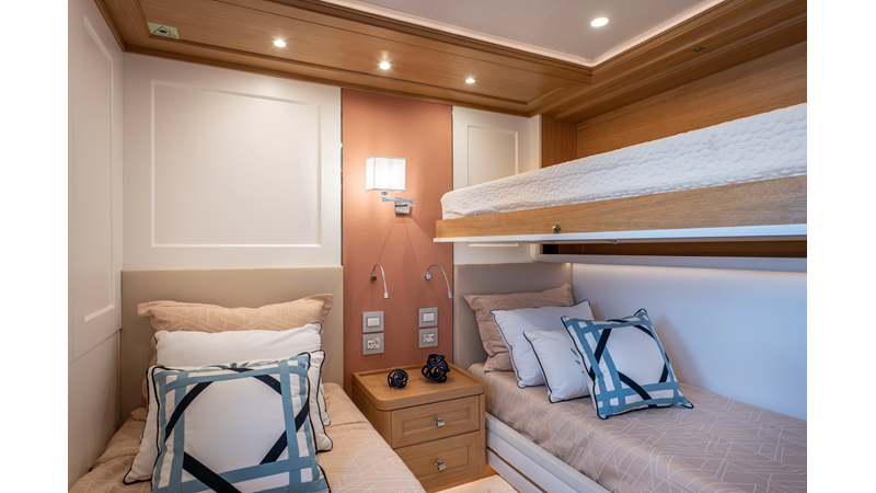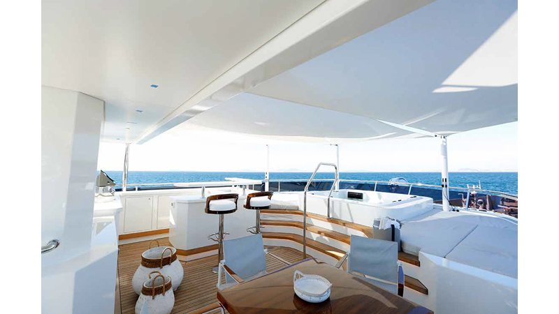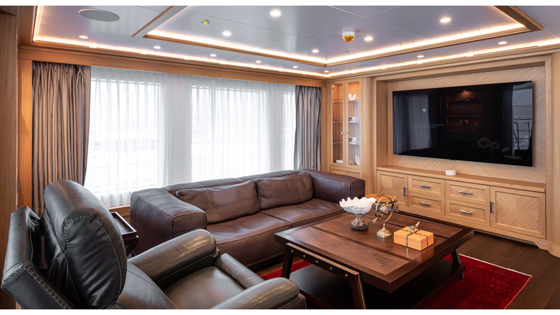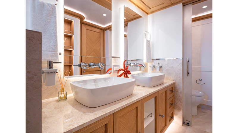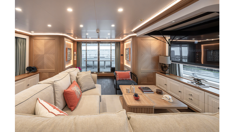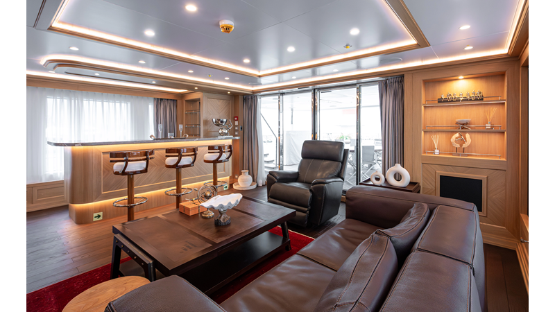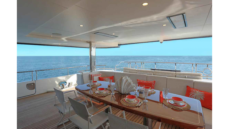 SEVEN SEAS has a timeless interior decor by Epikworks Interior Design and comfortably sleeps 10 guest in 5 cabins including a spacious on-deck master. A 4,000kg davit located on the upper deck can accommodate a substantial tender. Her Caterpillar C32 giver her a range of 3,600nm at cruise speed. She is built to commercial class and built for true blue water cruising.