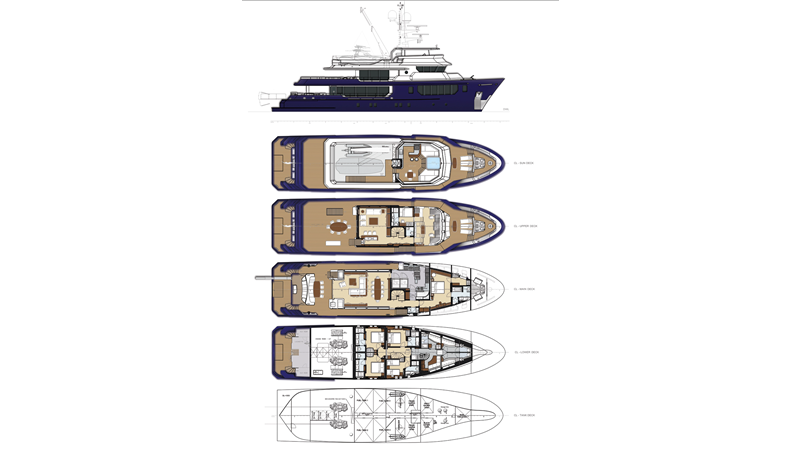 SEVEN SEAS is a custom global explorer designed by well respected Dutch design firm Vripack who has a long history developing some of the most sought after expedition yachts in the world. Vripack has taken that experience & knowledge and teamed up with RMK Shipyard in Turkey to build SEVEN SEAS, the 2024 RMK 120.