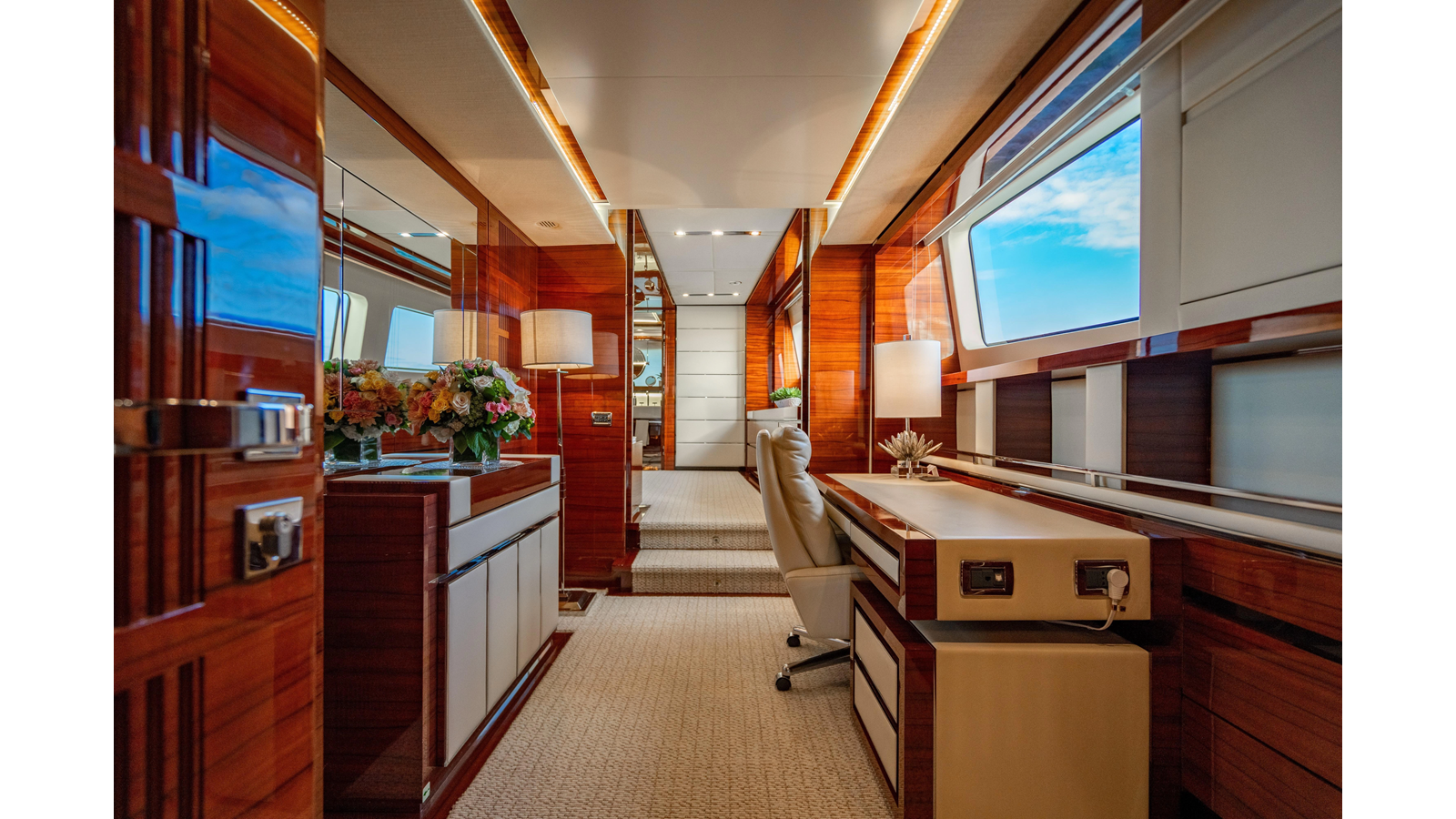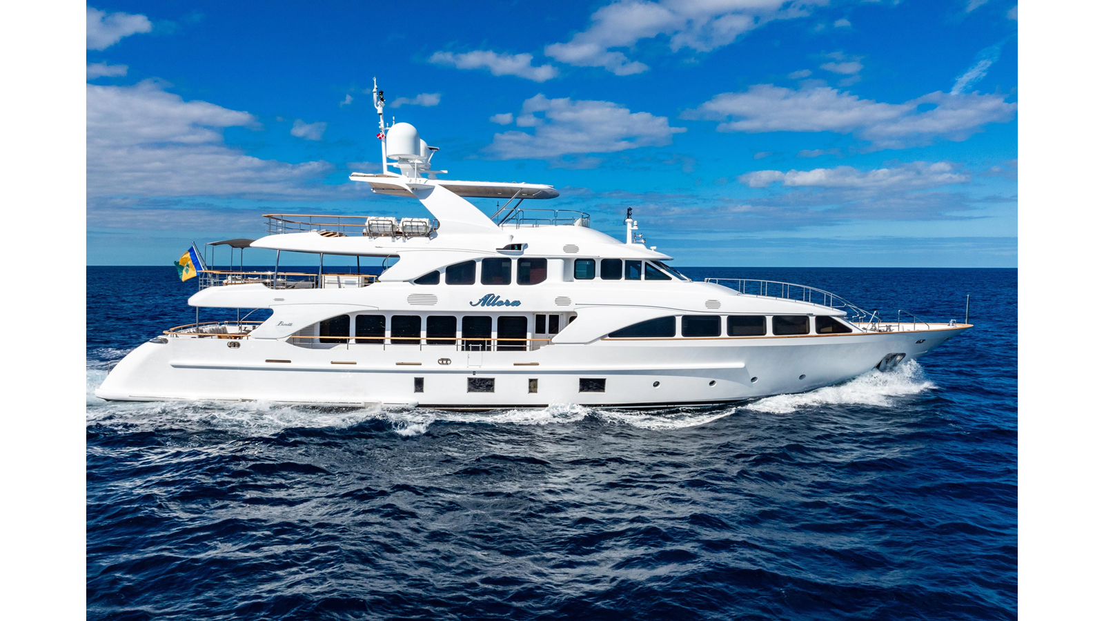 Among the 121 Benetti yachts built, “ALLORA” stands out for her décor and extensive options. Built to MCA and ABS class at delivery, she was originally delivered with over $2 million in additional factory options. The custom features and attention to detail are evident throughout.