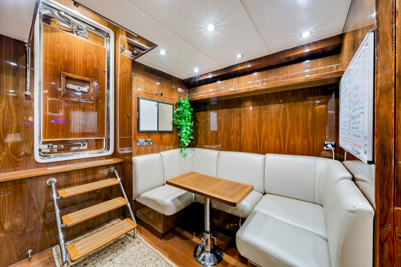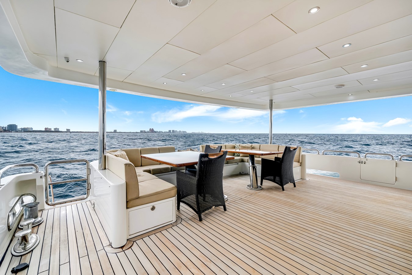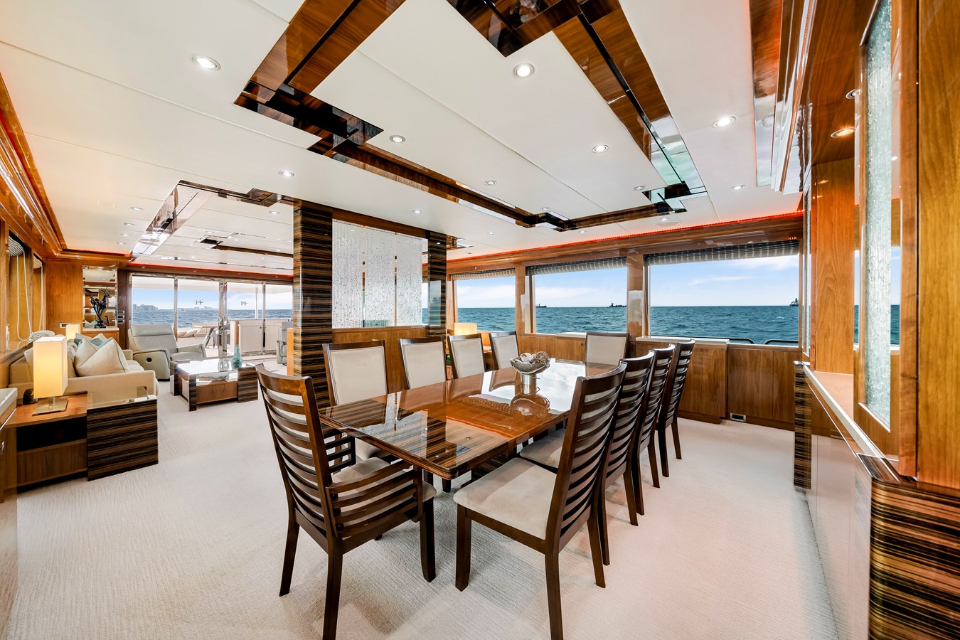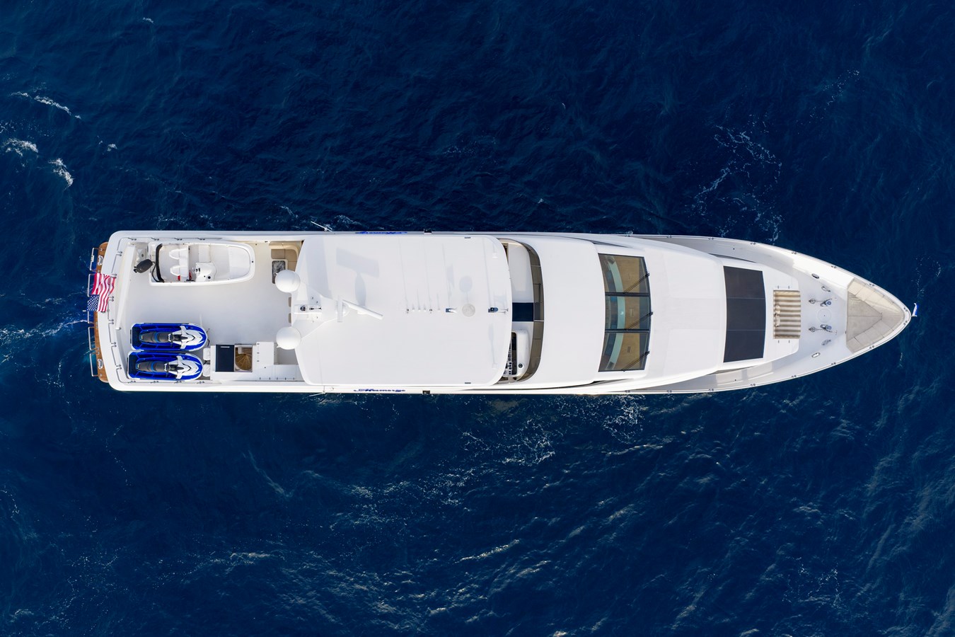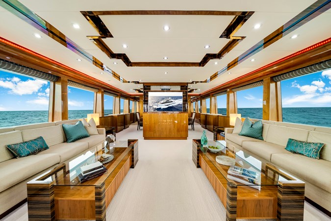 multiple gathering spaces both inside and out, up to 60 guests can comfortably enjoy the yacht across her