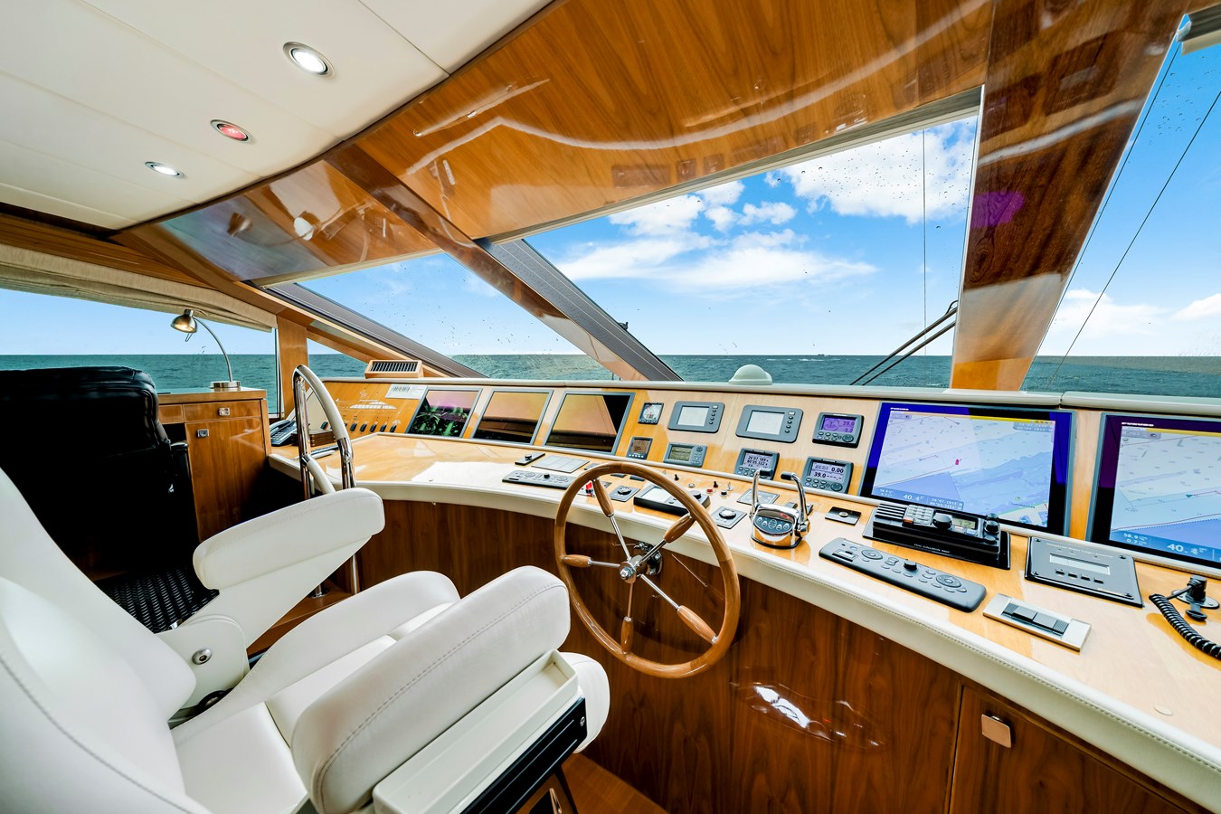 Designed for both private ownership and charter potential , the layout balances comfortable living spaces with excellent areas for gathering and entertaining. The raised pilothouse configuration elevates the helm above the main deck, maximizing guest living areas and contributing to the yacht’s open and spacious interior feel.
