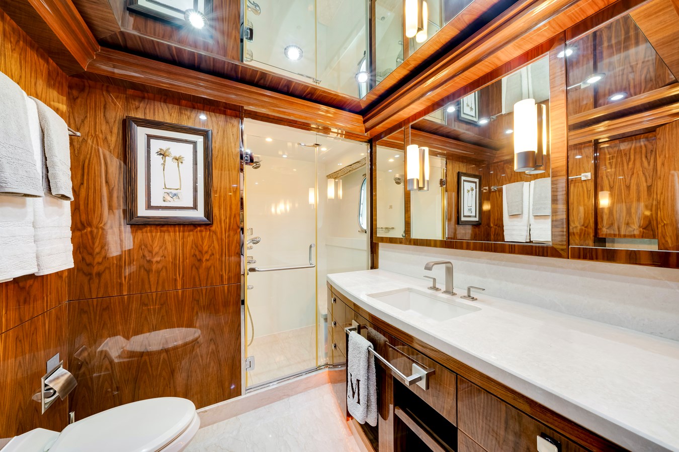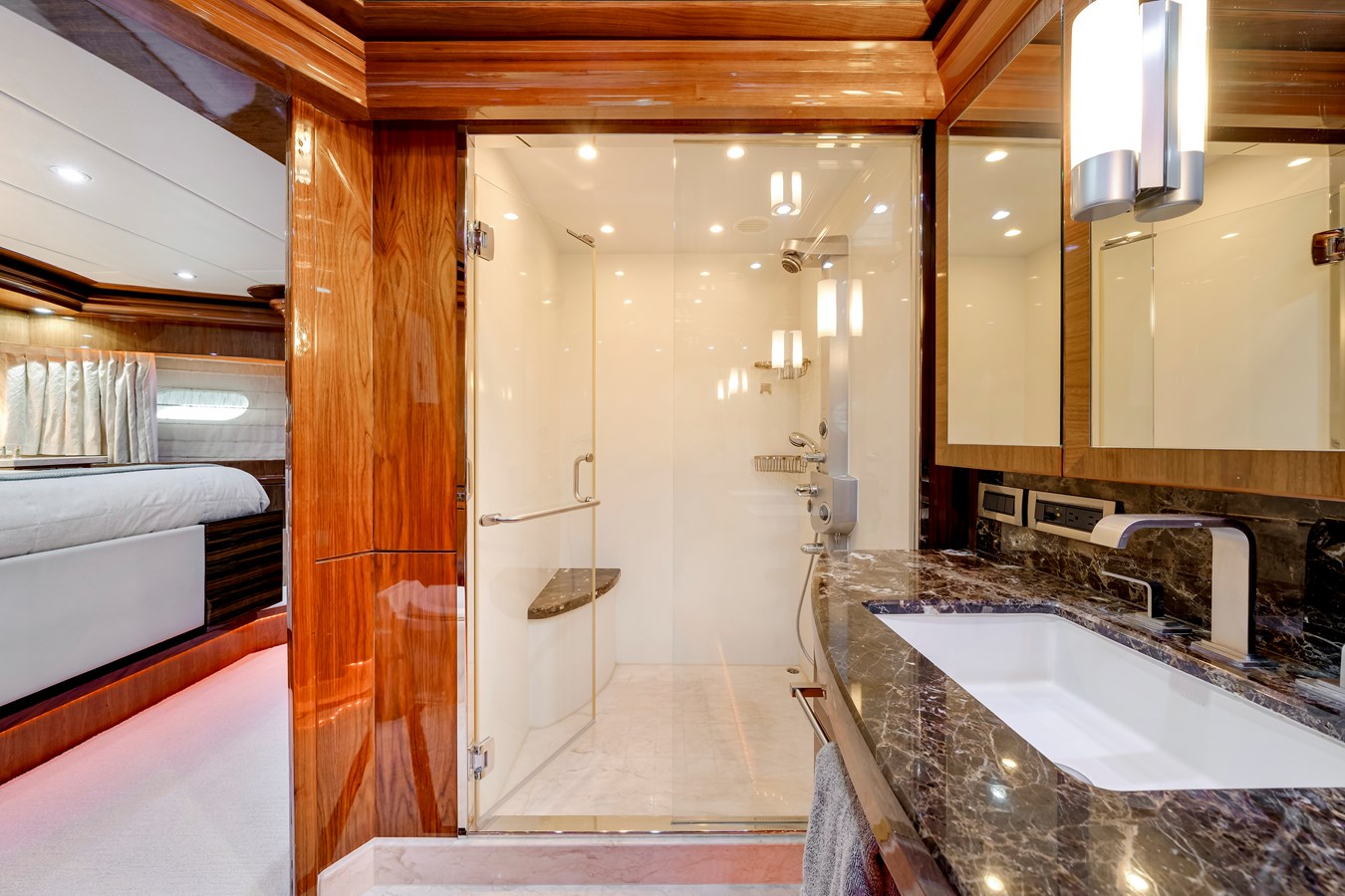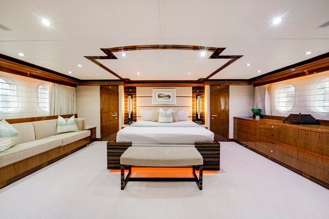 The yacht’s interior volume and generous headroom create a sense of space rarely found in yachts of this size, giving MESMERIZE the feel of a significantly larger vessel.