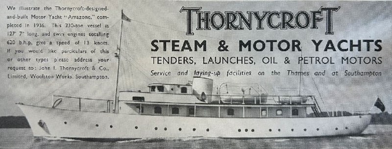 AMAZONE is the last pre-war pedigree motor yacht of her size available for restoration. Launched in August 1936, AMAZONE was built to a very high standard by John I Thornycroft & Co. in Southampton. This is a yacht with significant potential. She has good interior volumes, significant deck space and a fine sea going hull form.