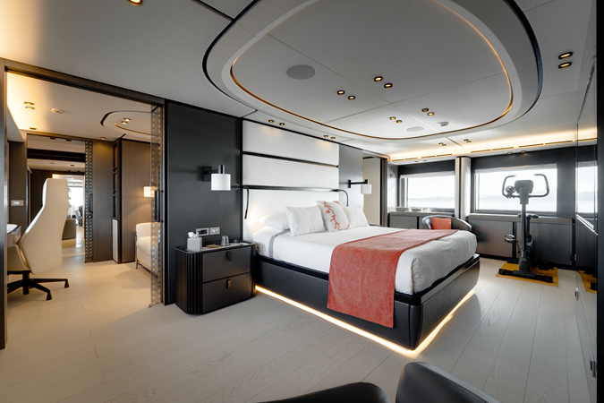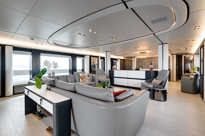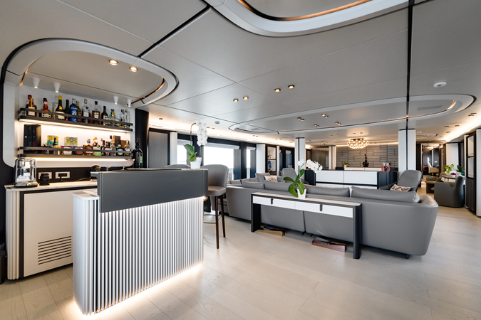Designed by Francesco Guida, her exterior and interior work in perfect harmony to create a fluid connection between sea and sky. Expansive decks invite outdoor living, from the aft lounge and al fresco dining area to the foredeck sunpads and jacuzzi.