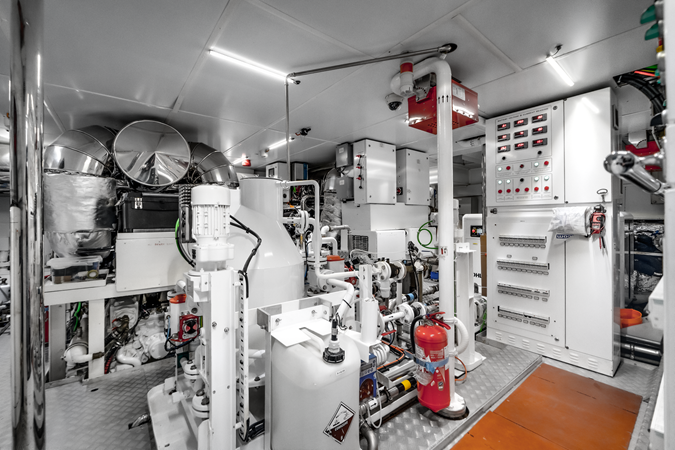 Constructed entirely in aluminium at the renowned Palumbo Superyachts shipyard in Savona, L.A.U.L achieves the perfect balance of power and efficiency. Twin 1800 Hp CAT32 engines propel her to a top speed of 17 knots, with a comfortable cruising speed of 15 knots and an impressive range of 5200nm at 9 knots — ideal for exploring the Mediterranean or crossing to more distant shores.