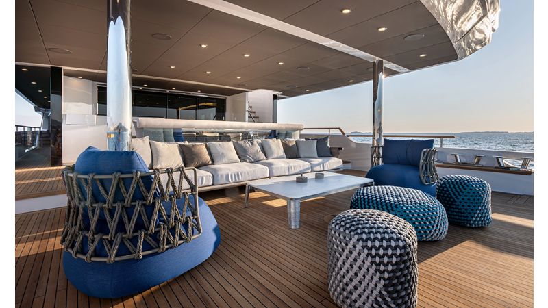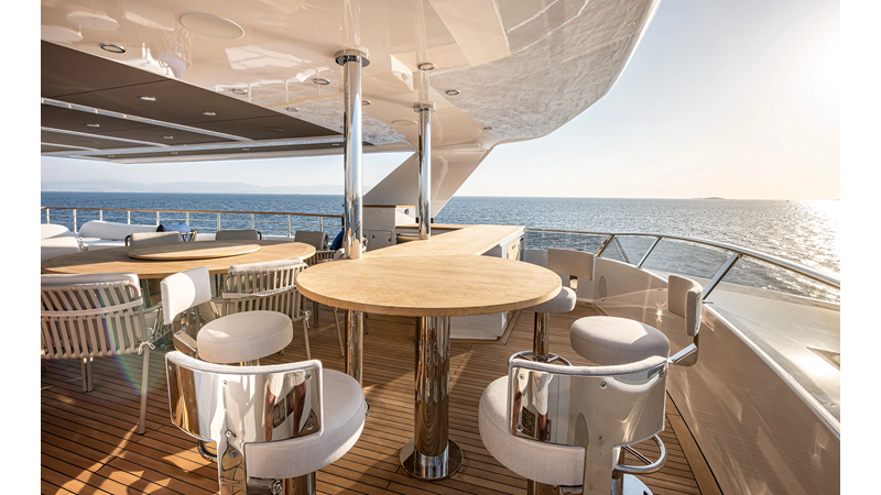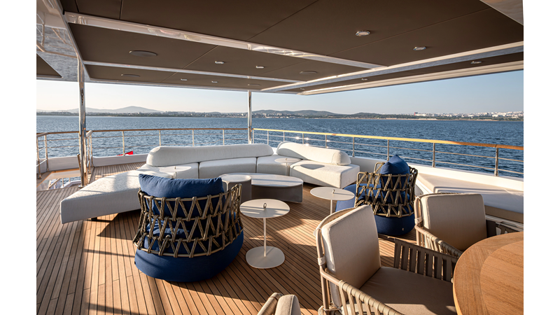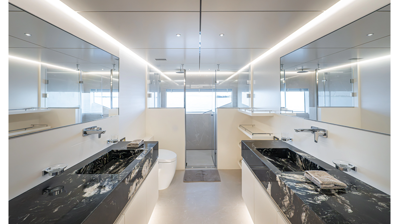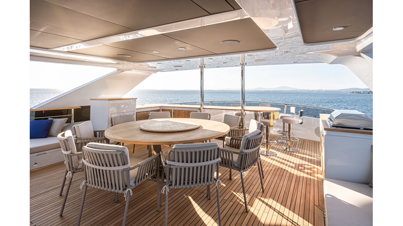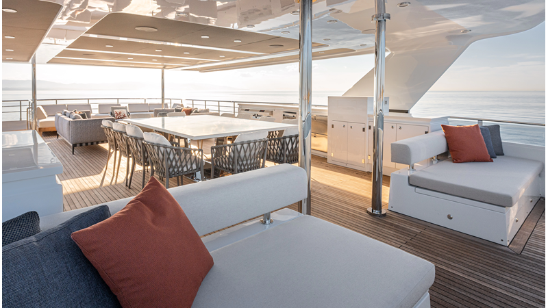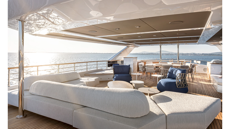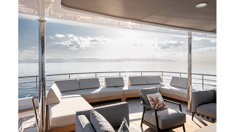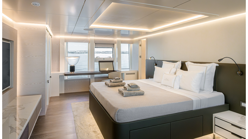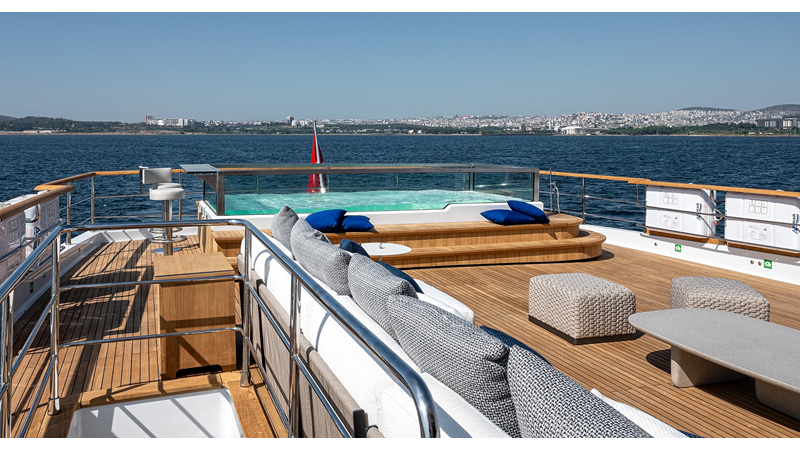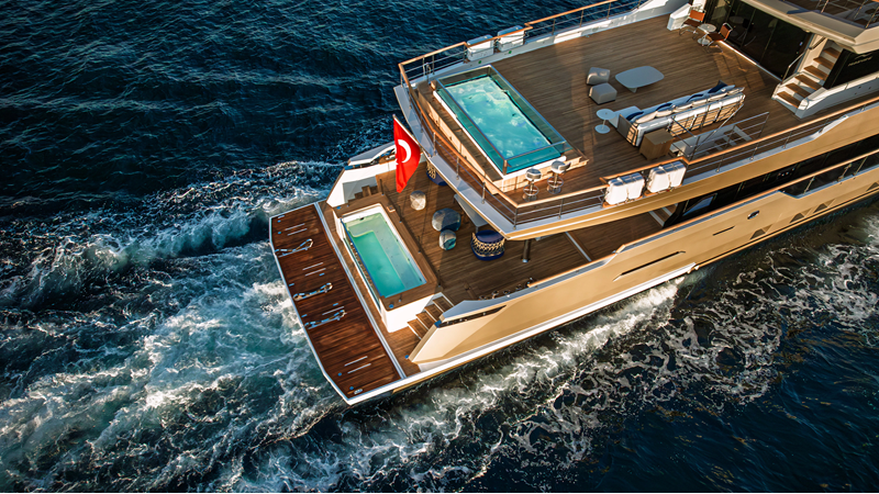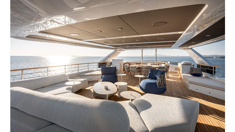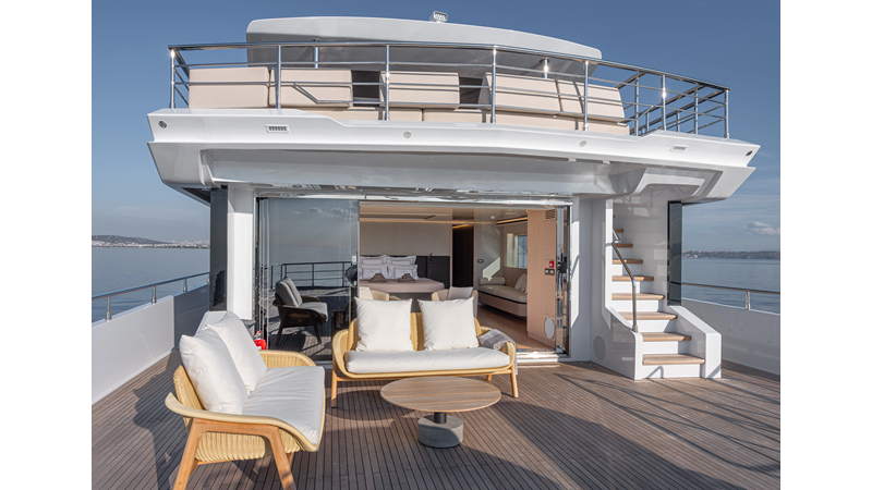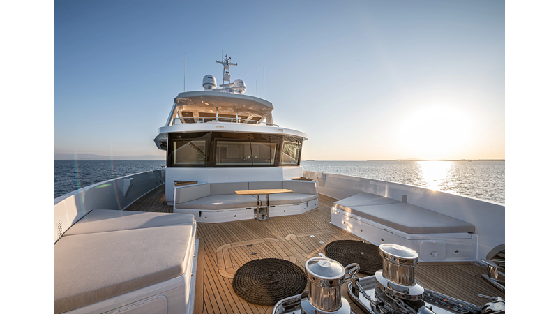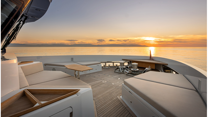 By eliminating the garage/beach club area we have been able to enlarge the swim platform thus the length overall has increased from 37m to 40m. The jacuzzi has created an inviting area to enjoy close to the ocean and by moving the aft deck sliding doors forward we have enlarged the aft main deck exterior space by taking some of the massive main salon found on the 37XP and turned this into an outdoor space. You still get that great volume one would expect from the 37XP but now the exterior & interior spaces are more balanced.