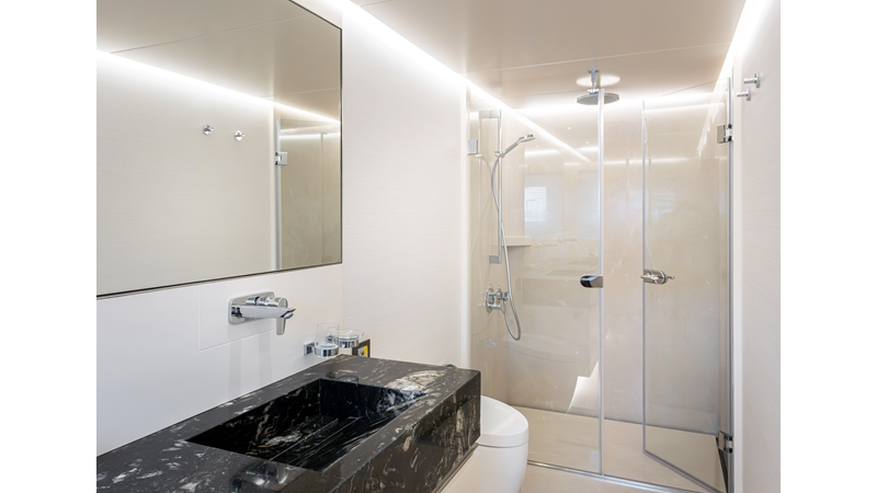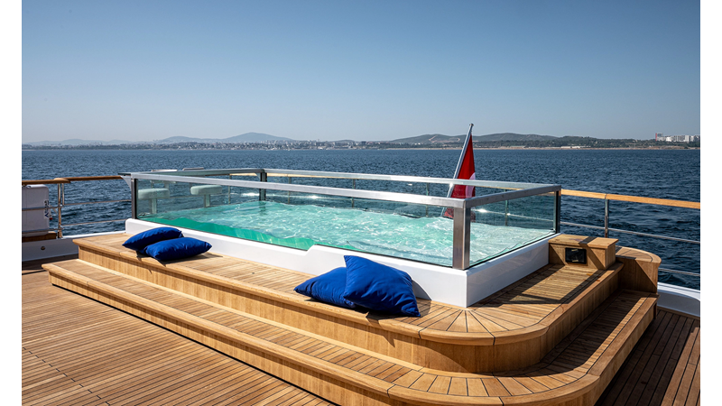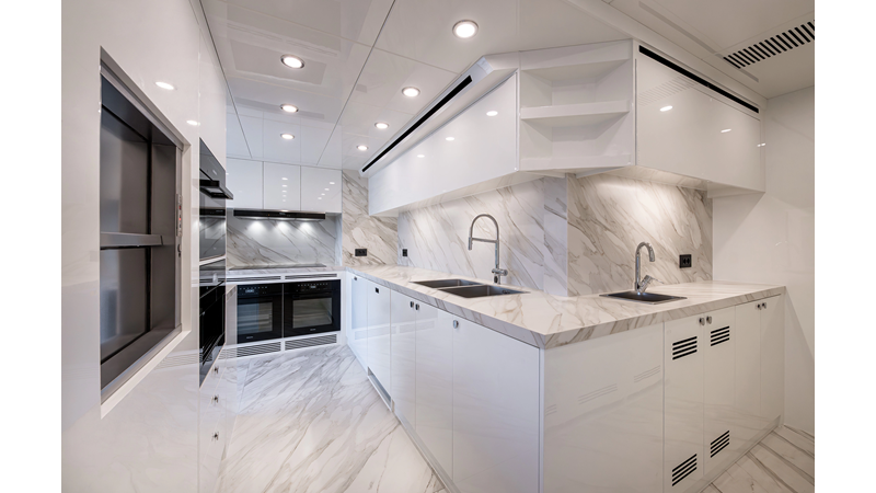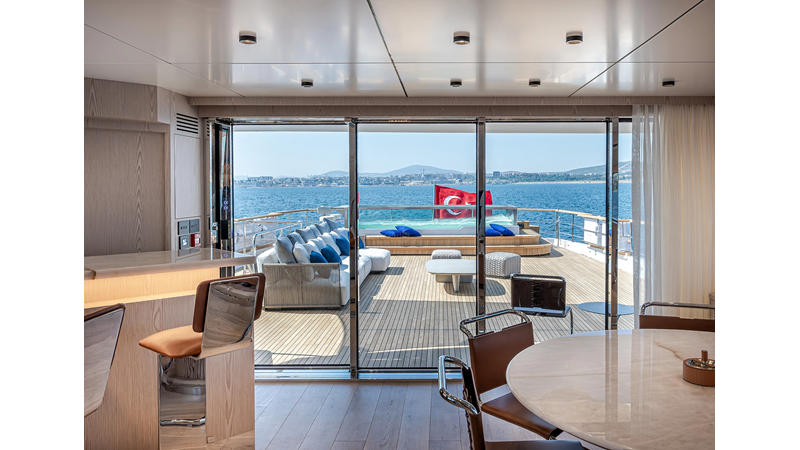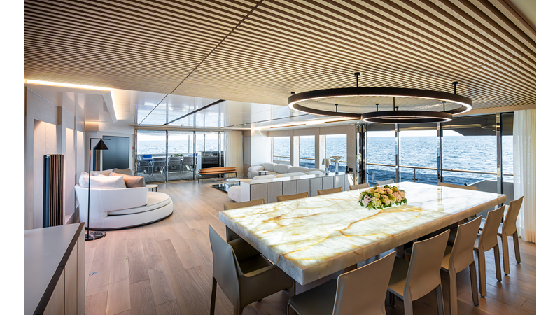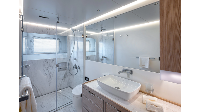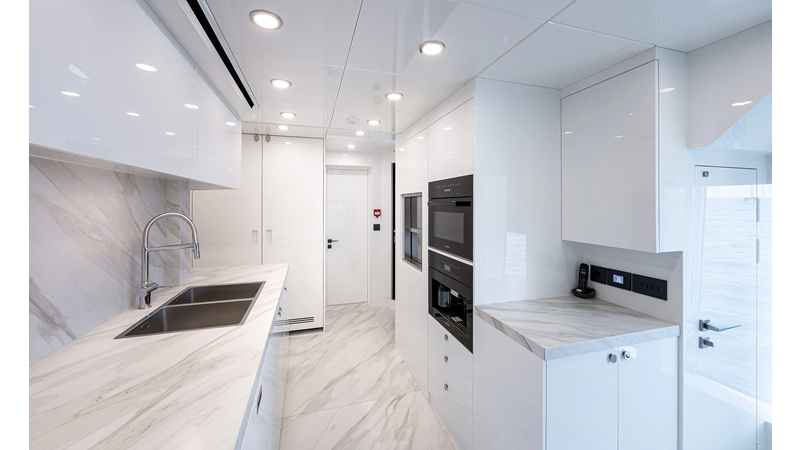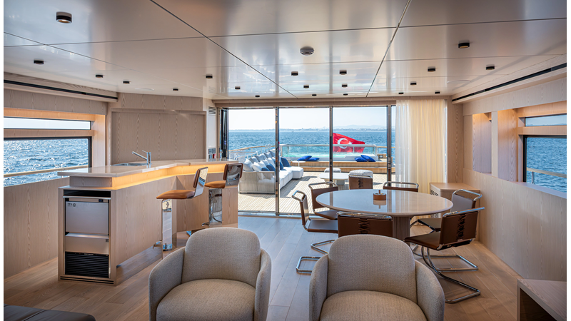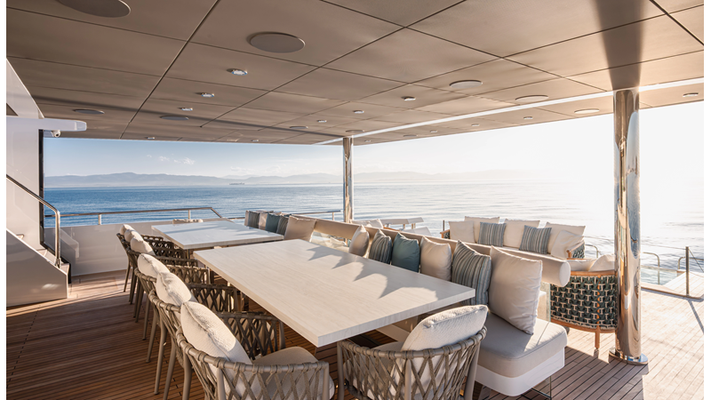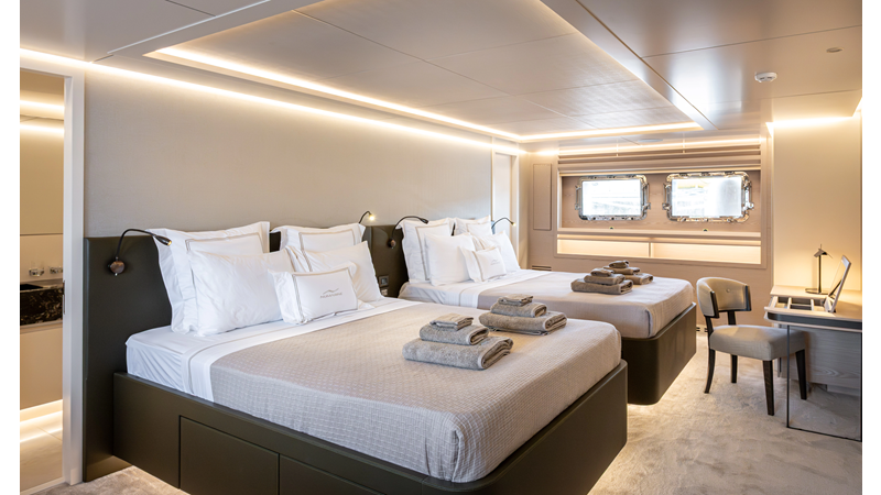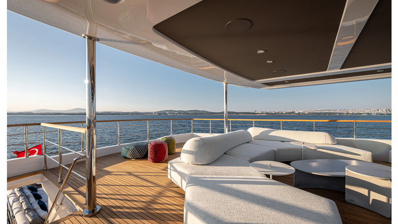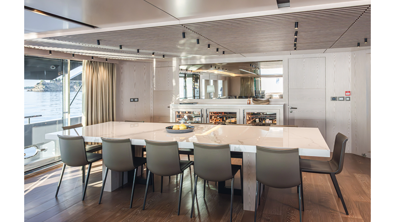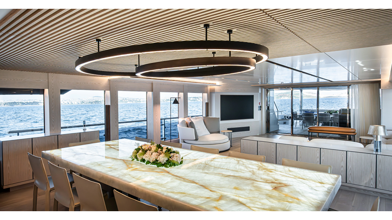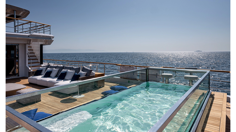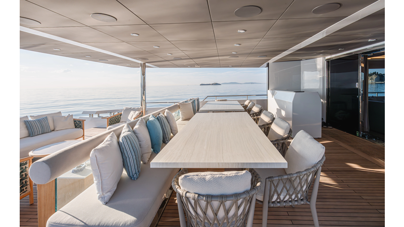 By eliminating the garage/beach club area we have been able to enlarge the swim platform thus the length overall has increased from 37m to 40m. The jacuzzi has created an inviting area to enjoy close to the ocean and by moving the aft deck sliding doors forward we have enlarged the aft main deck exterior space by taking some of the massive main salon found on the 37XP and turned this into an outdoor space. You still get that great volume one would expect from the 37XP but now the exterior & interior spaces are more balanced.