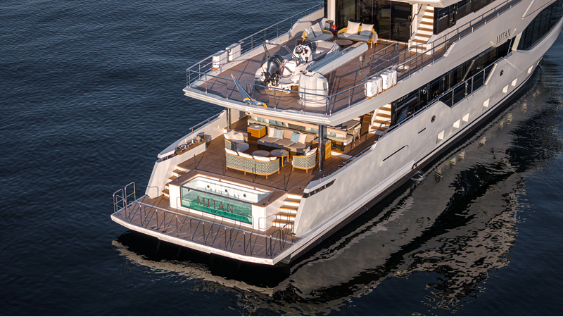 The sundeck, boat deck and interior layout options found on the 37XP model remains the same with the 40MXP with the only major change is found at the transom of the yacht.