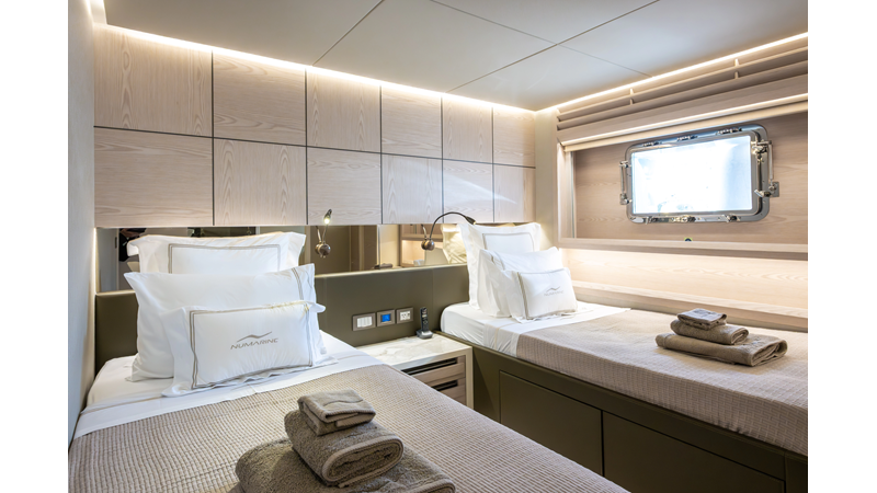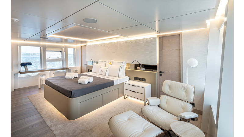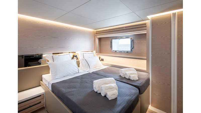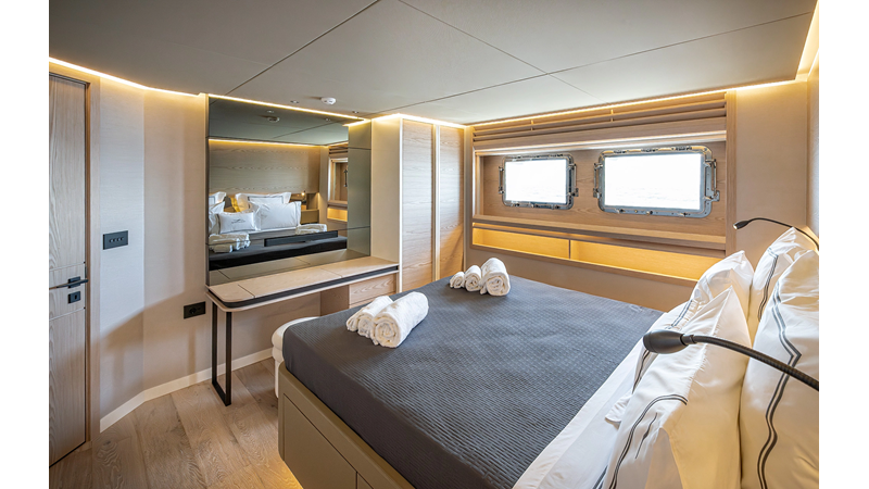 Photos shown are of two completed 40MXP- Hull #1 MIOUCH and Hull #2 MITAN, both delivered in 2025- highlighting variations and interior decor.