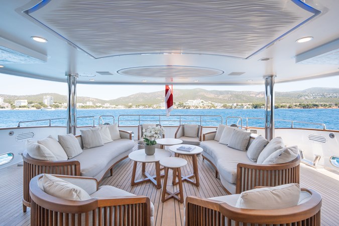 Her expansive decks are perfectly suited for both relaxation and entertaining, highlighted by a reimagined sundeck featuring a bar and generous shaded areas. Inside, sophisticated materials and refined details create an atmosphere of timeless elegance throughout.