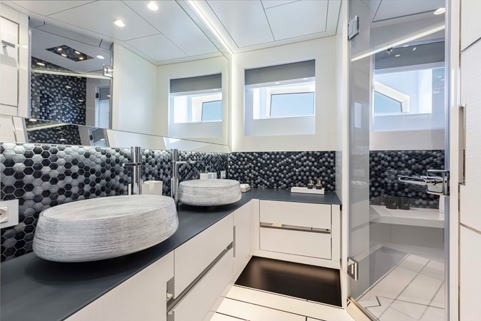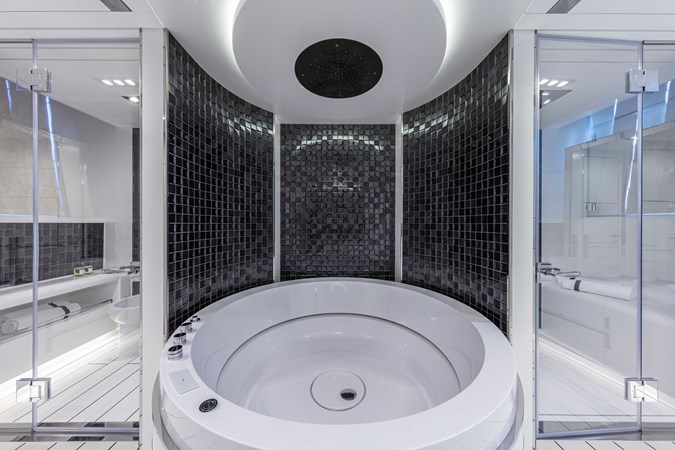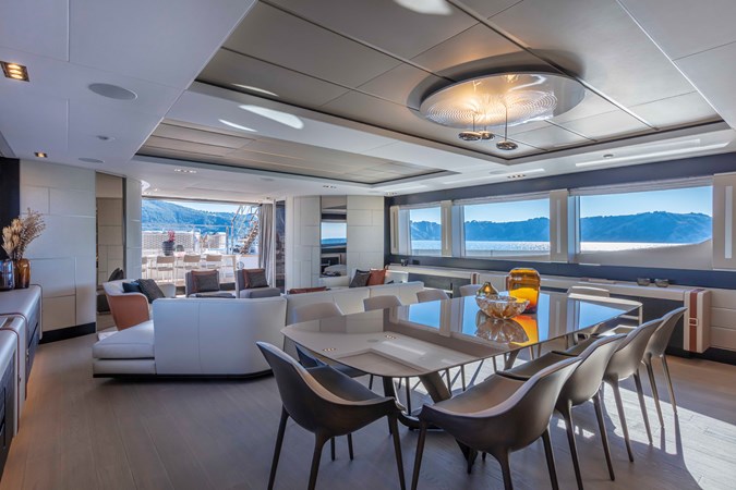 PERFORMANCE: Pershing 140 comes with four MTU 16 V 2000 M96L 2600 HP engines. The hydro-jet propulsion assures excellent performance levels, both at cruising and maximum speed. Consistent with the Pershing DNA, the domotics and electronic systems are all state-of-the-art and coniugate performance with well-being and relaxation. Three Seakeeper 35s guarantee absolute comfort even while at anchor.