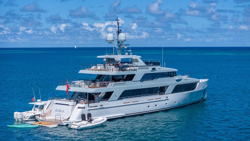 GIOIA is a 43m (141ft) motor yacht built by the renowned Italian shipyard Codecasa in 2024. She features a distinctive color scheme with a gunmetal-grey superstructure and a white hull, complemented by a sleek, modern interior design that sets her apart at sea.