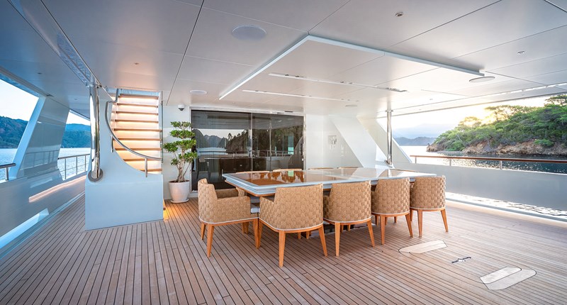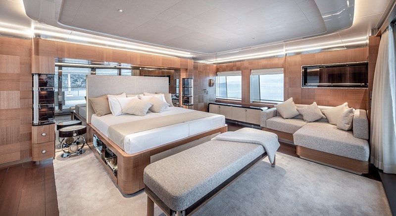 Designed for both private and experienced ownership, SUNRISE offers an intelligent layout across three guest decks, with a rare private elevator connecting all interior levels. This not only improves day-to-day flow on board, but also makes the yacht wheelchair friendly, a feature still uncommon in this size bracket. She has been kept in excellent condition and completed her 5-year special survey with RINA Class, reinforcing her readiness for immediate use.