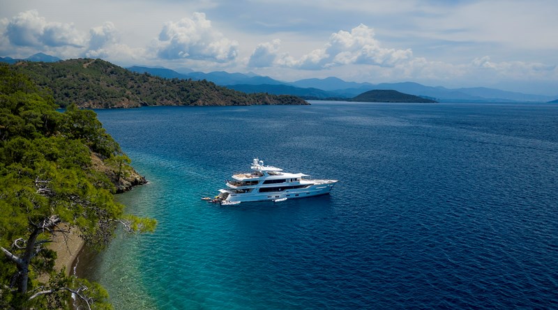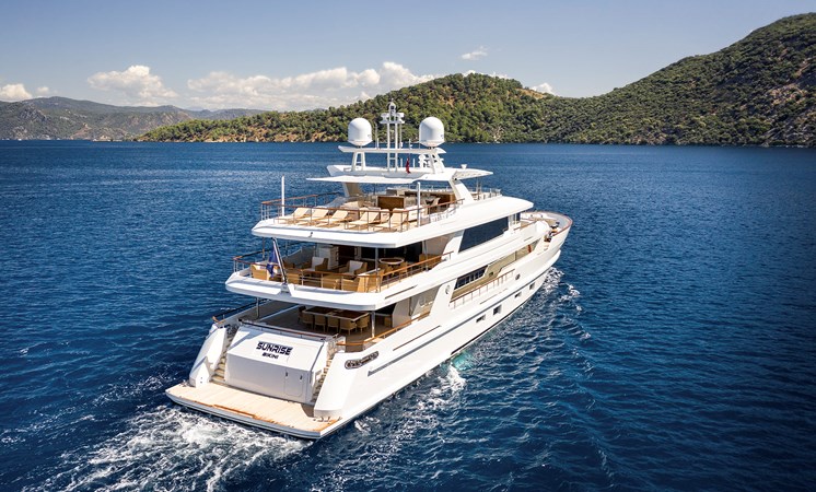 M/Y SUNRISE is a 141ft (43m) luxury motor yacht built by Yildiz Shipyard (Perini Navi subsidiary shipyard) in Turkey, with steel and aluminium displacement construction and a clear emphasis on volume, privacy and charter-ready practicality. Built in 2019 and delivered in 2020, she combines elegant exterior lines by Ginton Naval Architects with a refined interior by Hot Lab, characterised by warm woods, contemporary detailing and generous natural light, manufactured and installed by Ulutas Yacht Interior, upscale interior fitout company.