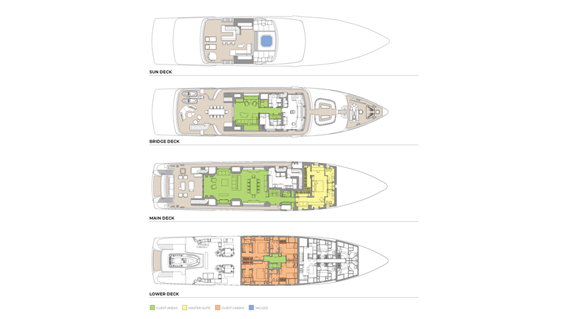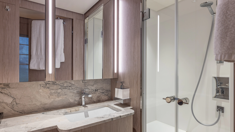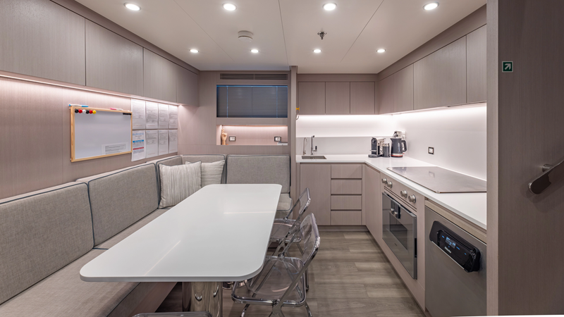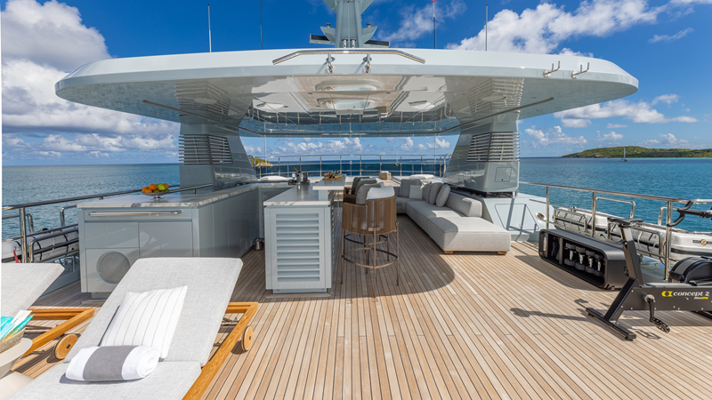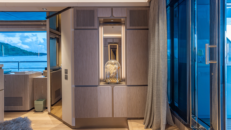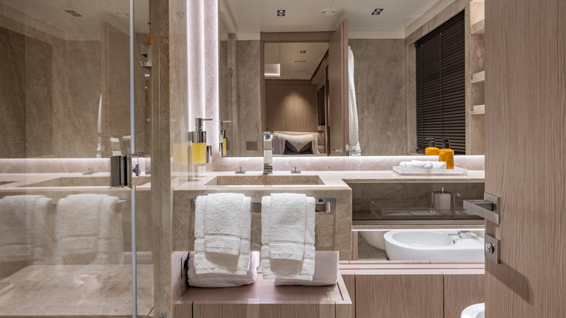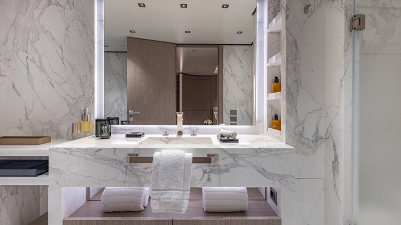 From her distinctive gunmetal-grey paint scheme to her sleek, modern interiors, GIOIA offers outstanding entertaining spaces and accommodation for up to 12 guests in five spacious cabins, all within an impressive 499GT interior volume.