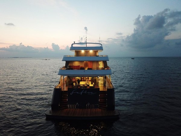 Presenting to you “SAFIRA” a Luxury Safari Yacht constructed in 2017. Measuring 142′ (43.35m) with a solid steel hull this yacht accommodates 28 guests with 14 luxury cabins. Equipped with Twin Caterpillar C18 engines. Fuel capacity of 40,000 Litres for long-range expeditions.