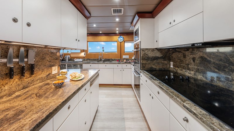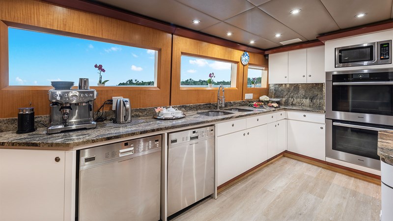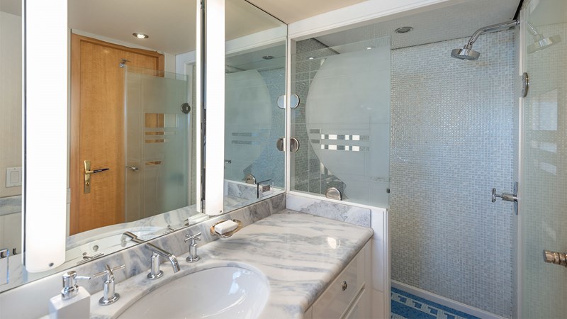 SURINA is the ultimate 45-meter yacht for owners seeking performance, pedigree, and shallow-draft freedom. Fresh off major 2020 and 2022 refits, she blends modern luxury with proven Trident craftsmanship, delivering a seamless cruising experience from The Bahamas to the Med. Her bright, contemporary interior features an expansive main salon, a full-beam master suite with private office, and a beautifully designed skylounge that captures panoramic ocean views. With accommodations for 11 guests across five elegant staterooms, SURINA offers an ideal layout for both private family cruising and high-end charter operations.