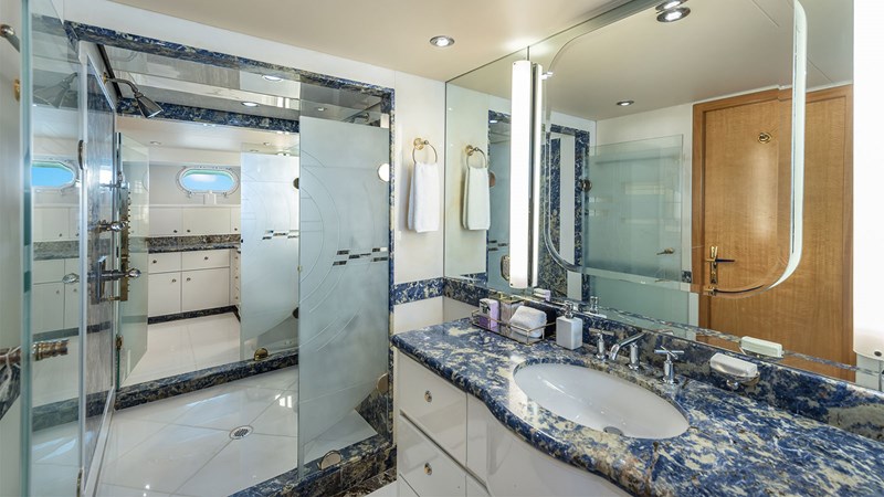On deck, SURINA shines with multiple alfresco dining areas, an oversized sun deck complete with jacuzzi and wet bar, and a redesigned foredeck perfect for secluded relaxation. Her shallow 7’6” draft unlocks anchorages unreachable by most yachts her size, while twin MTUs provide impressive speed and efficiency. With a strong charter record, top-level mechanical updates, and a standout combination of comfort, capability, and style, SURINA represents one of the best opportunities in the 45m market today. She is turnkey, luxurious, and ready for her next visionary owner.