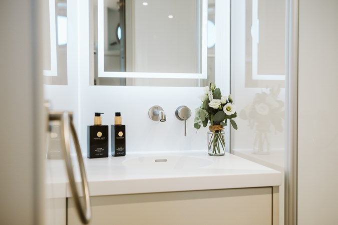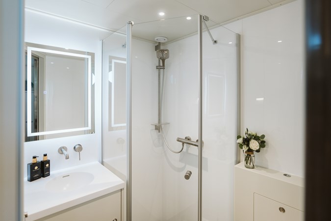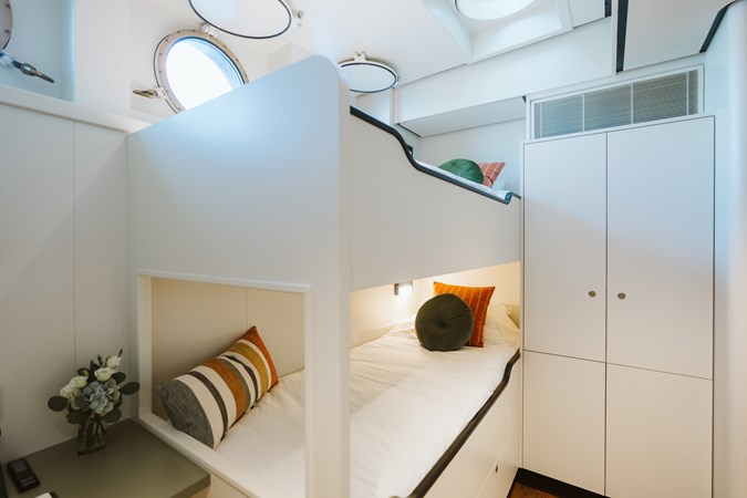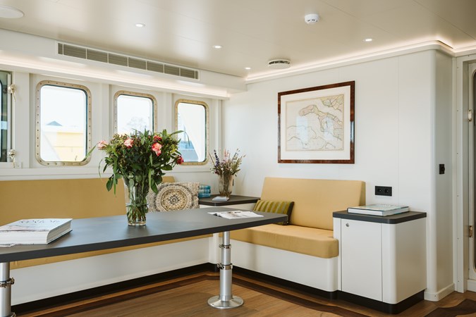 SCINTILLA MARIS was custom designed and built to the specifications for the ideal go-anywhere explorer yacht developed by a seasoned yachtsman during decades of cruising. The stunning outcome represents the epitome in comfort, quality, seakeeping characteristics, style and distinction. She was launched in 2023 and has just received her first tune up by her builder – Damen Maaskant in Holland. Her heavily built, recycled trawler hull, the use of state-of-the-art technology in electric propulsion, navigation equipment and vessel management systems, all complimented by refined interior and exterior amenities, make her an alluring combination of a superyacht.