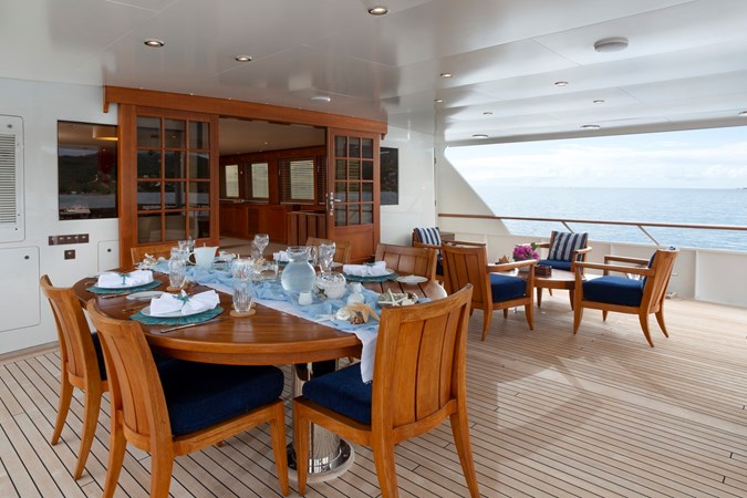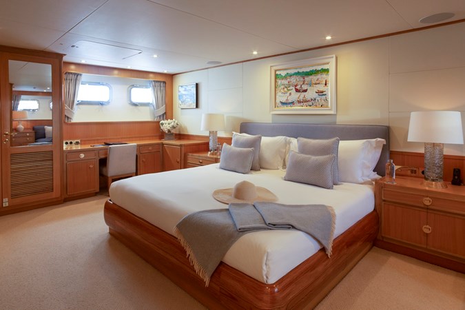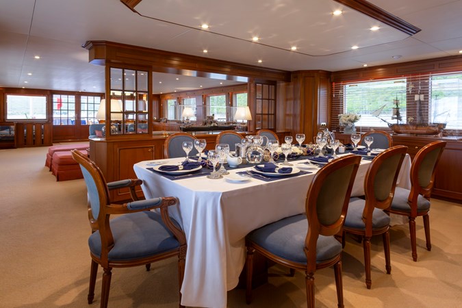 In 2021, she received a further significant refit focused on exterior restoration and mechanical servicing. This included a full repaint, corrosion treatment, and underwater hull blasting with fresh antifouling, as well as structural repairs to both steel and aluminium. Major systems including shafts, stabilisers, bow thruster, windlass, cranes, and passerelle, were thoroughly serviced, accompanied by a range of interior upgrades and technical improvements.