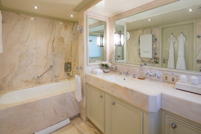 Her elegant exterior was designed by De Voogt Naval Architects, while her warm and sophisticated interior was styled by Glade Johnson Design. Finished with classic teak decks and boasting a gross tonnage of 418 GT, CONSTANCE offers a spacious and well-balanced layout across her three decks.