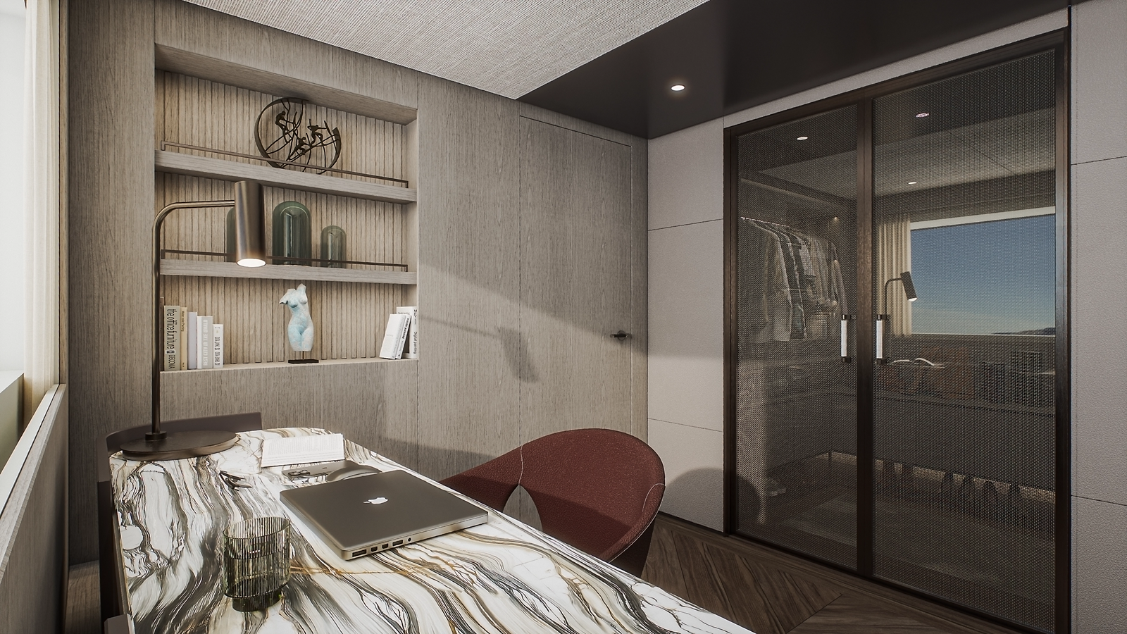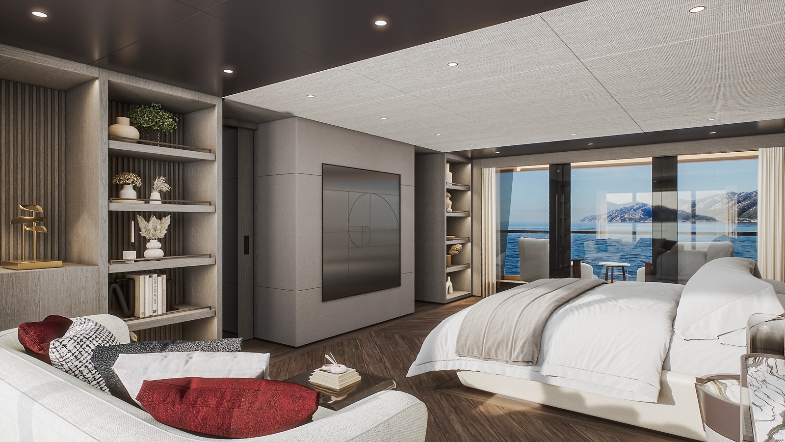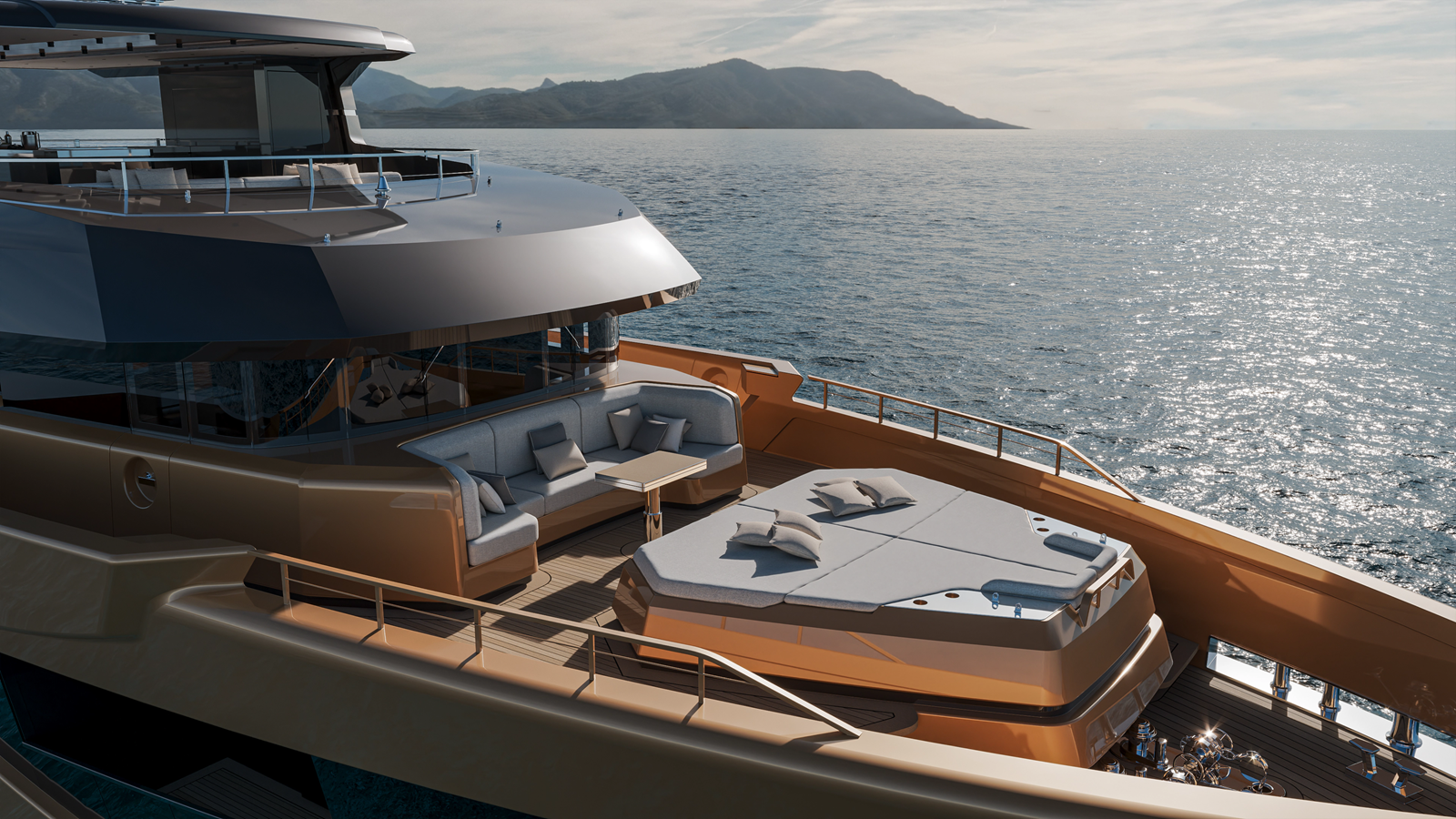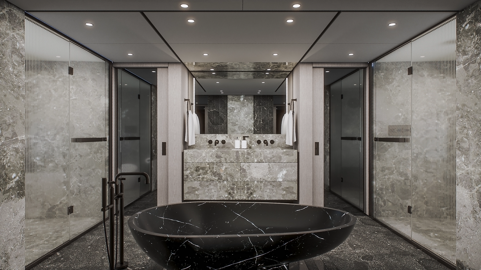 The core design and layout of the vessel focuses on strong profiles lines that feature a prominent bow meant for blue water cruising, an expansive aft deck that can be configured in a number of different ways with pool – helicopter operations – tender/toy storage, a 6 guest cabin layout, proper crew accommodations & technical spaces focusing on efficiency and redundancy one would expect in a global cruiser.