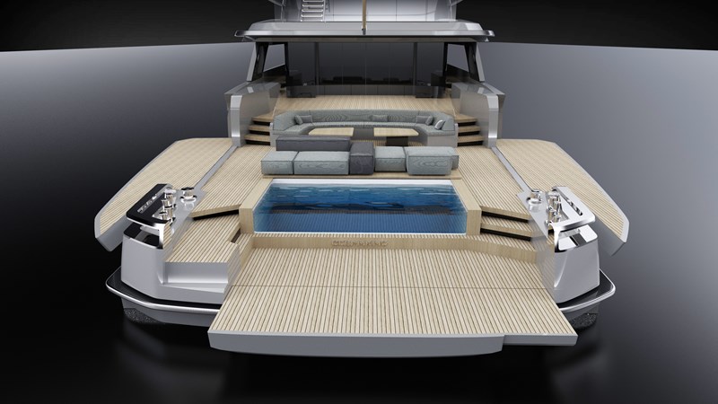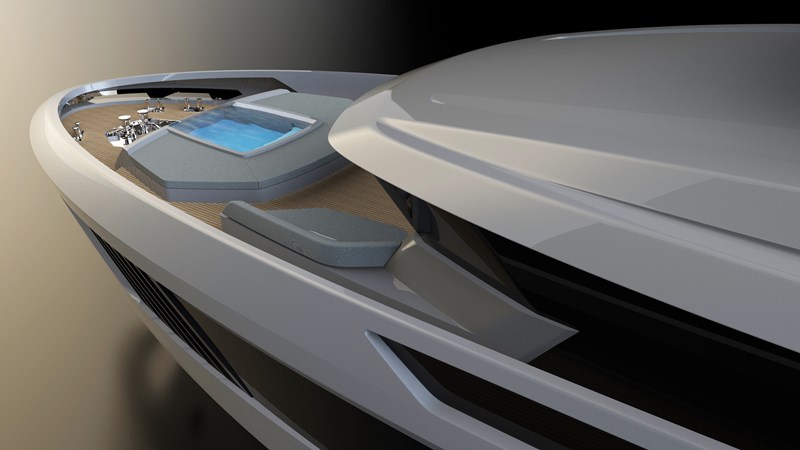 From bow to stern, the DOGE 500 is a study in balanced design — blending open decks with intimate lounges, communal living spaces with serene private retreats. The wide, open stern features twin fold-out balconies, offering direct access to the sea and an ideal space for entertaining or relaxing. On the upper levels, the dedicated owner’s deck offers a private front-facing terrace and a generous pool, while the crow’s nest delivers breathtaking panoramic views from the yacht’s highest vantage point.