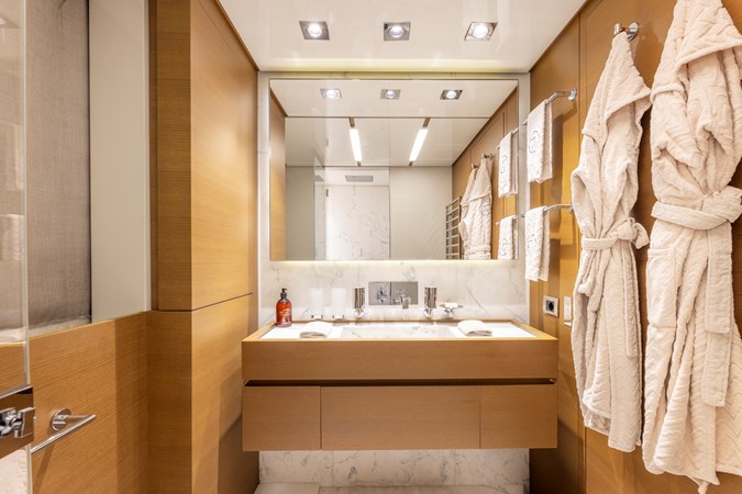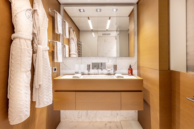Accommodating 11 guests across five cabins, including a main deck master, she is supported by 11 experienced crew members . A full complement of toys ensures endless fun on the water, all stored for instant use.