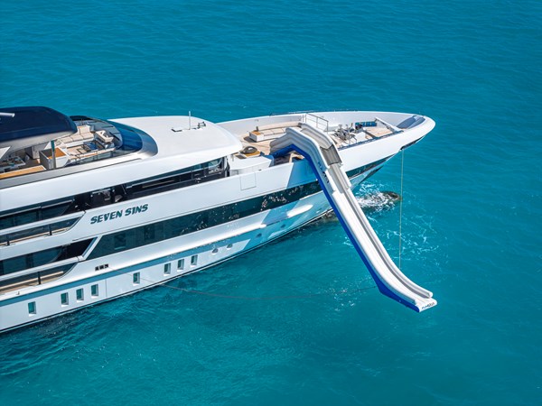 With a cruising speed of 13.5 knots, a maximum of 17, and a range of up to 4,000 nautical miles at economical speed, SEVEN SINS is equally at home in the Mediterranean or Caribbean . Maintained to the highest standards with two yard periods per year and brand-new generators this winter, she is turnkey, versatile, and endlessly inviting ; a yacht that delivers the presence and sophistication of a much larger vessel without the complexity.