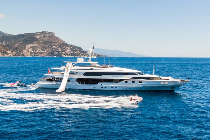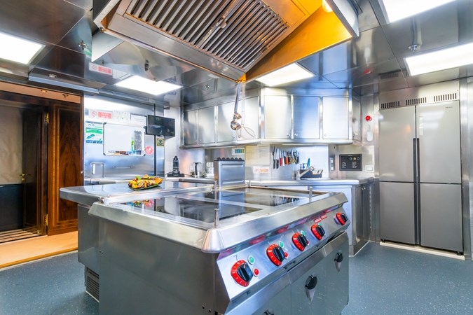 The interior is inspired by one of London’s finest boutique grand hotels in Knightsbridge, The Wellesley. She’s got a timeless and luxurious art deco style that transmits sophistication and comfort. Her accommodation sleeps 12 and consists of two master suites, one on the lower deck and one of the upper deck, a main deck VIP, 2 sets of twin rooms and a double cabin.