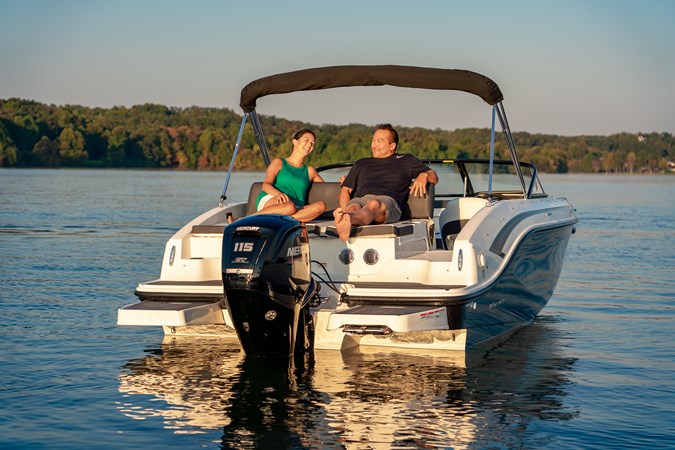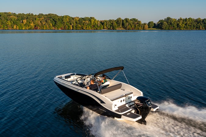 The 2023 Bayliner DX2000 is a versatile 19-foot deck boat designed for families and water sports enthusiasts seeking comfort, style, and performance. It offers three customizable interior layouts: a side console with maximum seating, a side console with an entertainment center and sink, and a dual console cockpit with a full windshield. Powered by a Mercury 150HP FourStroke outboard engine, the DX2000 ensures a smooth and stable ride. Its spacious cockpit features L-shaped seating for up to 10 passengers, a convertible aft bench seat that transforms into a sun pad, and ample storage including in-floor lockers and an integrated cooler. With its stylish design and thoughtful amenities, the DX2000 is a compelling choice for those seeking a reliable and enjoyable boating experience.