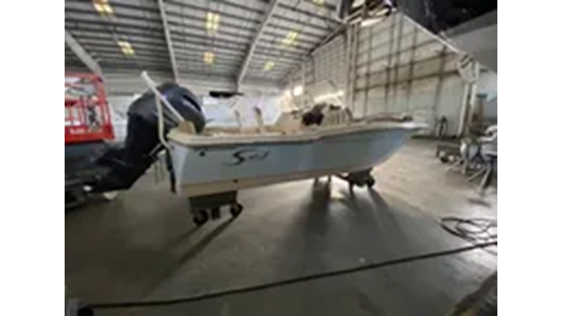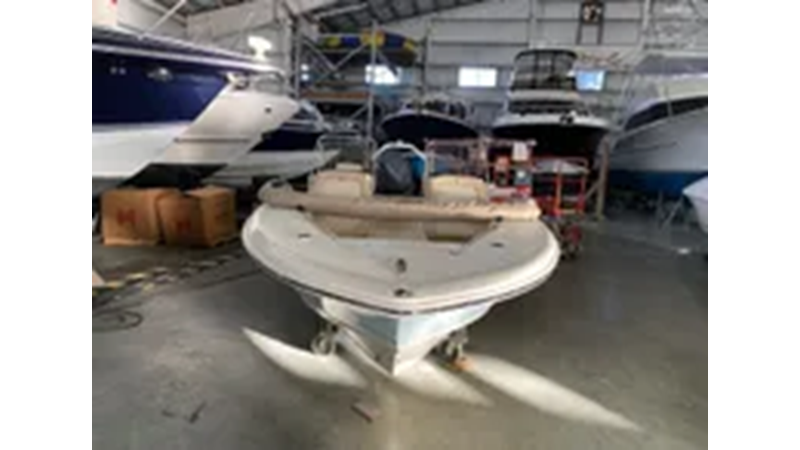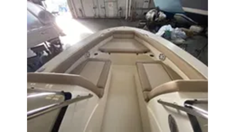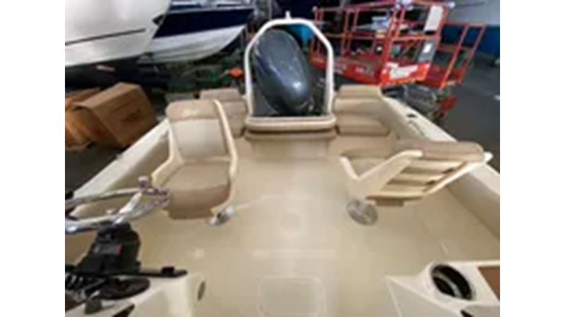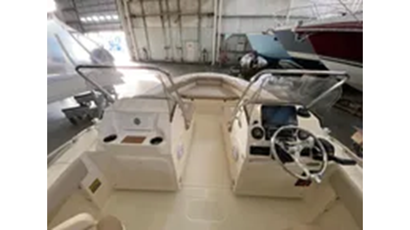 Silver Accent & Pinstripe on Hull • Battery On / Off Switch • S.S. Rub Rail • Shrink Wrap • Stern / Bow / Midship Pull Up Cleats • Stern Jump Seats • BayStar Hydraulic Steering • Tilt Helm • LED Under Gunnel Lights • Bow Cushion Set
