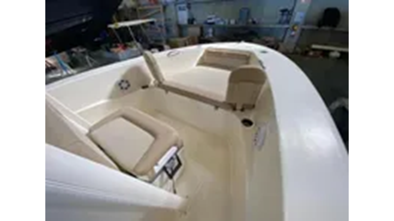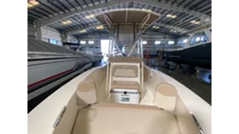 This 19-footer measures 19’5″ in length with a wide beam of 8’6″, offering vast space to not only move around freely onboard but to also land the big catch of the day. Standard swim platform, leaning post aerated bait well and console removable cooler seat with cushions complement the optional list of features available on this fuel efficient model. Available with optional T-Top or Bimini Top and backrest seating arrangement with ski tow bar for water sports enthusiasts.