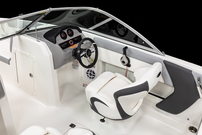 The 2024 Chaparral 19 SSi OB is a 20-foot bowrider that combines sporty performance with family-friendly features, ideal for both leisurely cruising and watersports. Powered by a Yamaha 115XB HP FourStroke outboard engine, it offers efficient fuel economy and reliable performance. The boat boasts a spacious cockpit layout with two swivel bucket seats, a rear bench, and an aft sun lounge, accommodating up to 10 passengers. Storage is ample, including a 70-quart cooler under the rear seat, a wakeboard-sized floor locker, and coaming storage. The 19 SSi OB is built with a Kevlar-reinforced hull laminate .