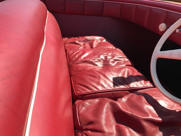 Newer bottom, the right red leather, kapok cushions, elegant folding windshield, curved transom (in two planes).