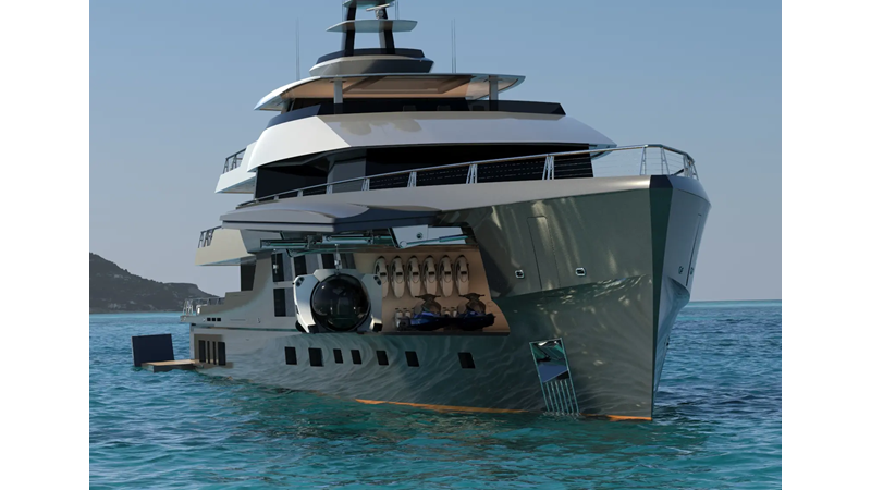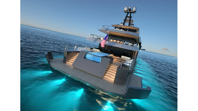Expanding on the success of the 45m Big Fish, PROJECT METAVERSE features some amazing features that set her apart from other designs: large open beach club with multiple bathing platforms, crows nest viewing deck, glass bottom pool, tender garage forward, and a private full beam owner’s suite complete with balconies on both the port & starboard sides one with a spa pool.