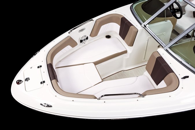 The 2025 Chaparral 21 SSi is a versatile 21-foot bowrider designed to deliver both performance and comfort for family outings and watersports. It features a beam of 8’4″, providing a stable and smooth ride. The boat is powered by a Yamaha F200XC 200 HP FourStroke outboard engine, ensuring efficient fuel economy and reliable performance. Standard features include a 40-gallon fuel tank, a 70-quart built-in cooler under the rear bench seat, and a full-height windshield with stainless steel supports. The cockpit layout includes two ultra-comfort helm seats with flip-up bolsters, a rear bench seat, and an aft sundeck with a walk-thru and lounge position. With a maximum passenger capacity of 12 and a dry weight of 2,900 lbs, the 21 SSi is well-suited for those seeking a stylish and functional boat for both cruising and watersports.
