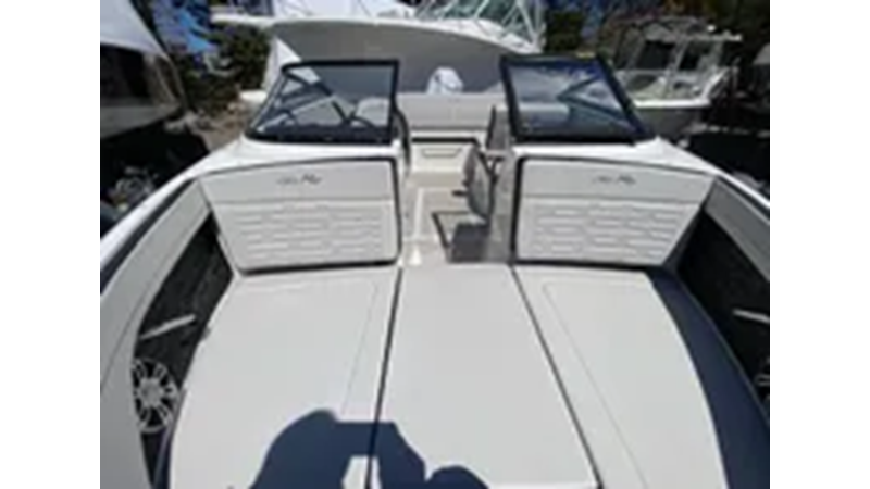 There are more than enough spaces and amenities aboard the SPX 210 Outboard to keep guests entertained all day. The self-bailing cockpit includes comfortable seating with an L-shaped bench, a convertible port companion seat that transforms into a lounger, a premium Fusion® SRX400 stereo system, and cooler storage. The broad bow offers room to stretch out, and the transom sunpad with a supportive backrest provides a lovely spot to lounge near the water. For added convenience, a port-side compartment can be used for storage or upgraded to a head for extended cruising.