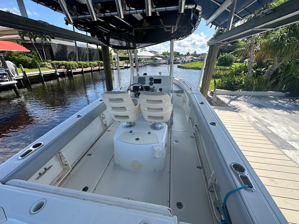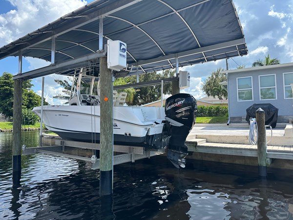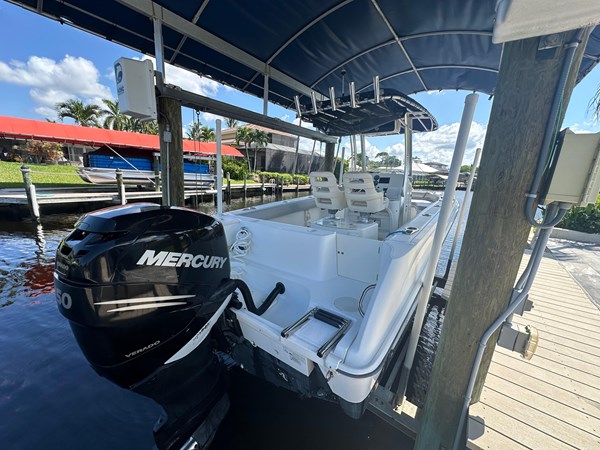 Lift kept, low hour 250HP 220 Outrage. Most of these have 225. Boat is in very good shape. New upholstery. T-Top with slots for outriggers if desired. Newer Fusion head unit on stereo, JL Audio speakers. Lenco trim tabs, spotlight with helm control. Windless with helm control. Garmin 541S multifunction display. 2 smart craft Merc gauges and Merc binnacle control.
