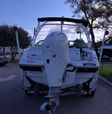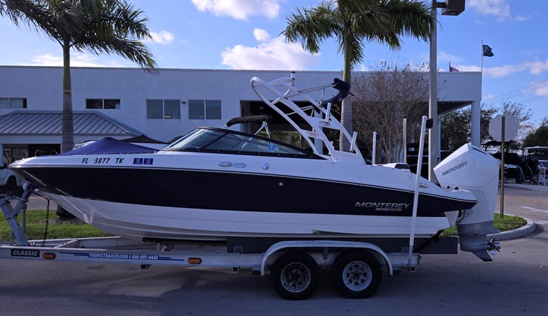 The Monterey M225 is a bowrider vessel with a wide bow as a deck boat. It is great family boat for day cruising or water sports. This M225 is nicely built and many options included. GPS , Sound System, Bimini, Boat Cover, Wakeboard Tower, Dual Battery Switch and Charger are among some of them. it is Powered by a Mercury 200 XL. An Aluminum Tandem Trailer is also included.
