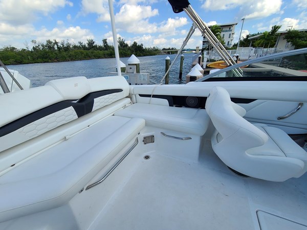 The 2022 Four Winns HD3 OB is a stylish and versatile deck boat designed for both performance and comfort. Measuring 22 feet 11 inches in length with a beam of 8 feet 5 inches, it offers ample space for up to 12 passengers.