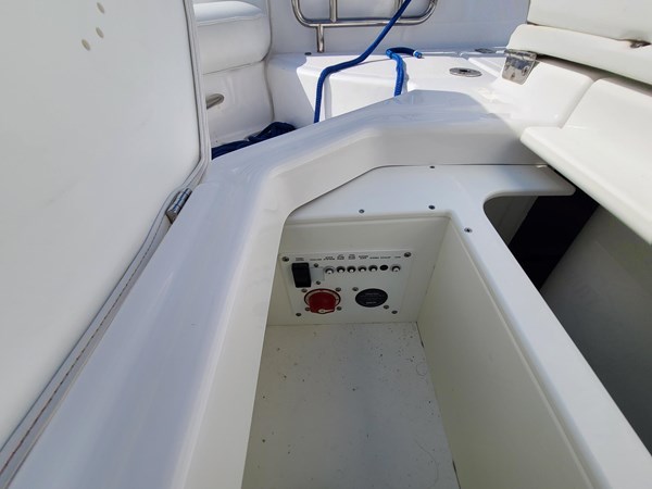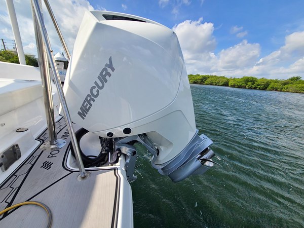 Powered by a 200 HP Mercury FourStroke outboard engine, the HD3 OB delivers reliable performance, while its Stable-Vee hull ensures smooth handling. The boat features a well-appointed cockpit with U-shaped seating, a convertible sun lounge, and premium upholstery.