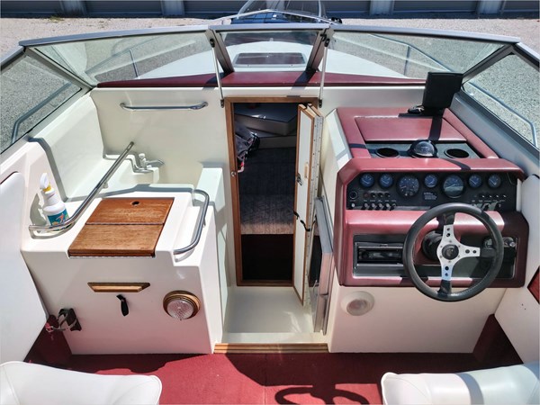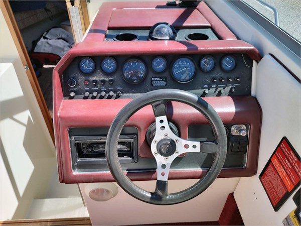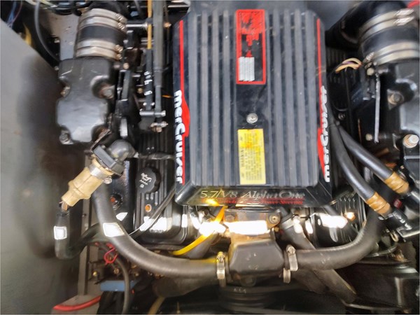 This great looking boat was flooded in 2019 while in storage. The engine was replaced by a rebuilt 5.7lt and the hull in the transom was reglassed and painted. It is an older boat, but the vinyl seating was replaced in 2012 and shows well. It has been freshwater used and well maintained. It is in an individual storage unit in Mountain Home.
