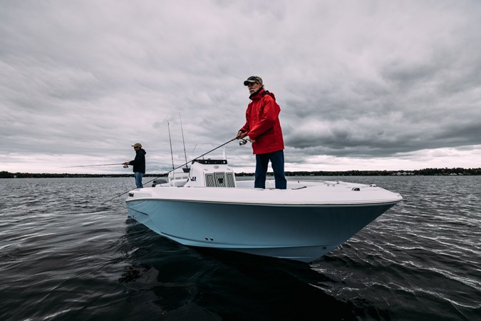 The 2023 Wellcraft 222 Fisherman is a versatile 22-foot center console boat designed for both avid anglers and families seeking a comfortable day cruiser. With a beam of 8 feet 6 inches and a dry weight of 3,900 pounds, it offers a stable and agile platform for various water activities. The boat features a 103-gallon fuel tank, ensuring extended trips without frequent refueling. Standard amenities include a 23-gallon baitwell, ample rod storage, and a head compartment, enhancing both fishing and recreational experiences. Power is a Mercury 200XL DTS.