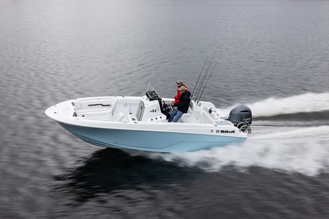 The 2023 Wellcraft 222 Fisherman is a versatile 22-foot center console boat designed for both avid anglers and families seeking a comfortable day cruiser. With a beam of 8 feet 6 inches and a dry weight of 3,900 pounds, it offers a stable and agile platform for various water activities. The boat features a 103-gallon fuel tank, ensuring extended trips without frequent refueling. Standard amenities include a 23-gallon baitwell, ample rod storage, and a head compartment, enhancing both fishing and recreational experiences. Power is a Mercury 200XL DTS.