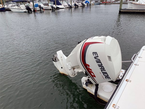 Equipped with a Simrad Go9 display and 2023 Halo 20 Radar, this boat is ready to navigate confidently. The 30-gallon live well, 109-gallon fuel tank, and 3-gallon XD100 oil tank make it ideal for full days on the water. Other additions include 360 degrees deck lights, shore power hookup with 2-bank battery chargers, and a large portapotty for longer outings.