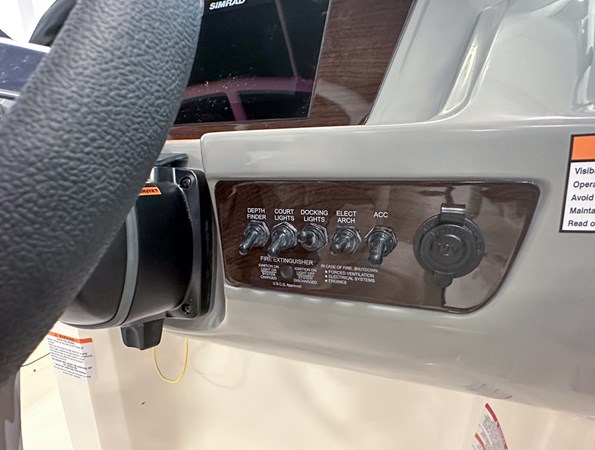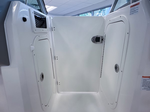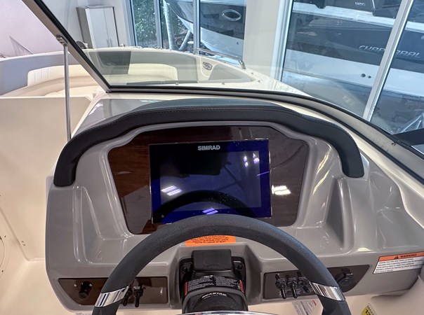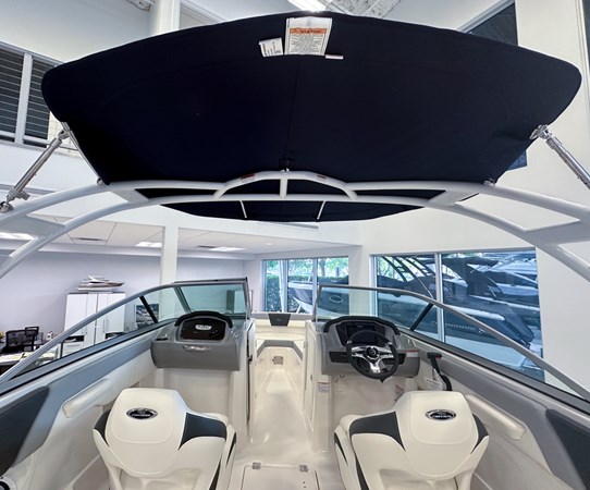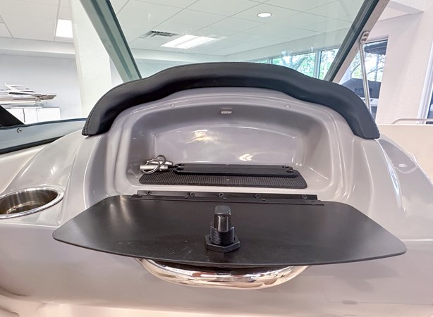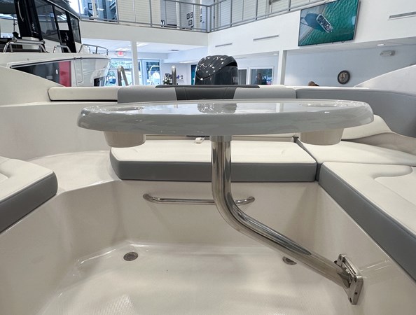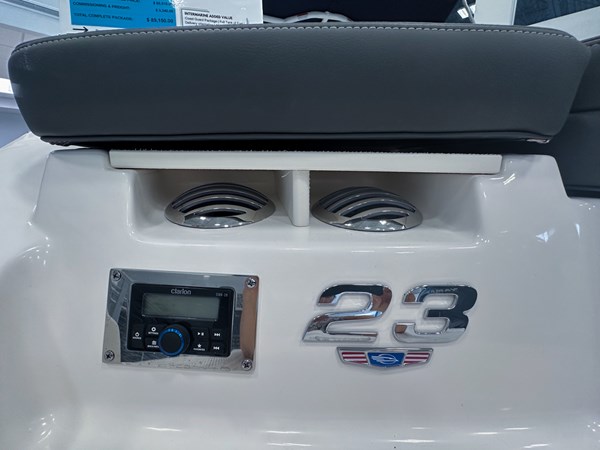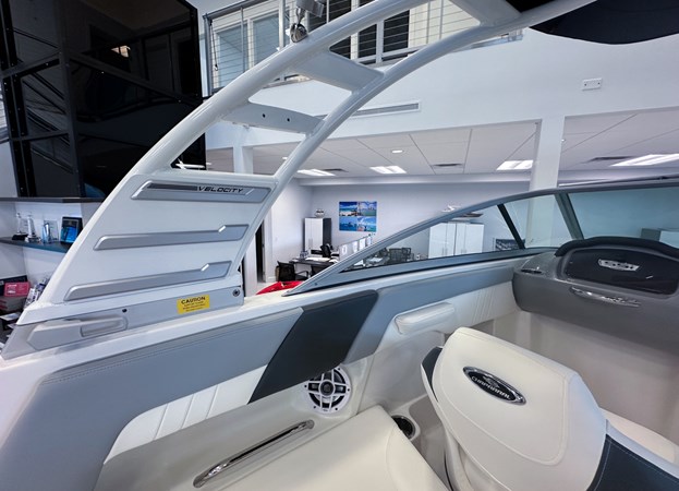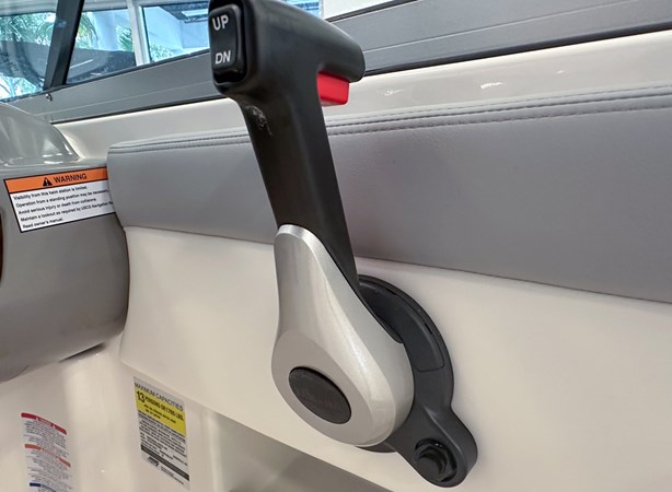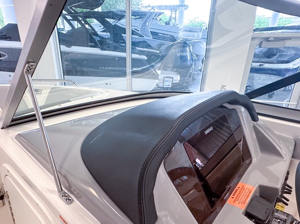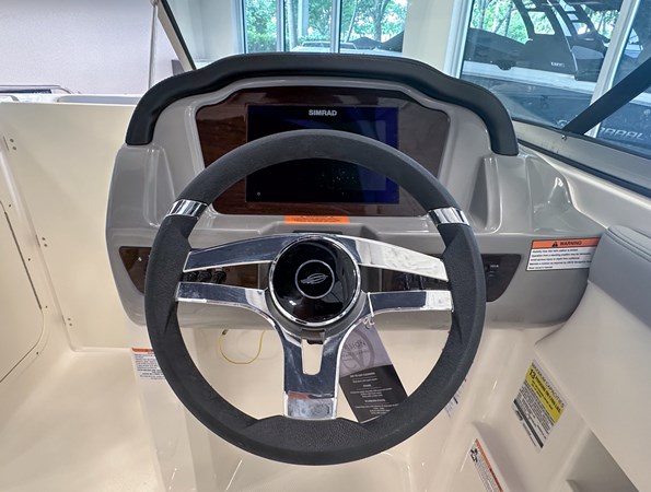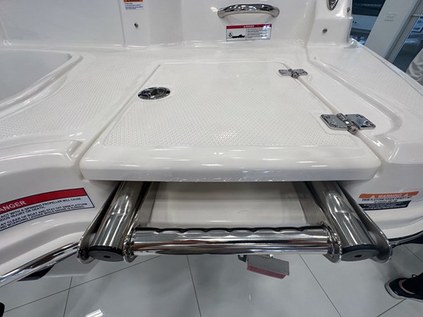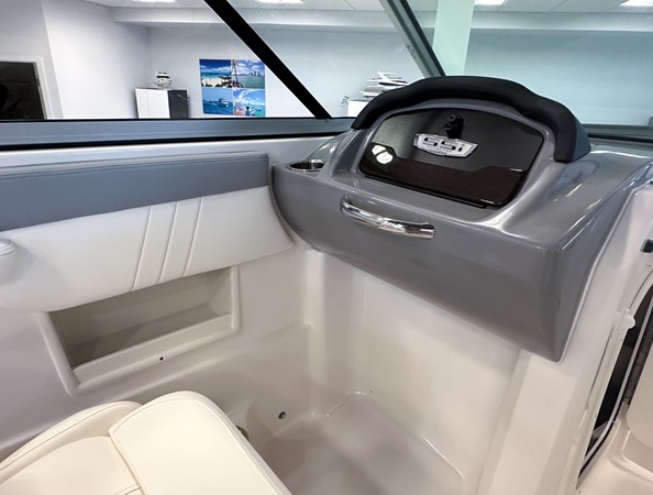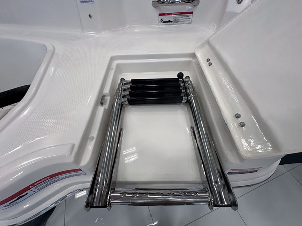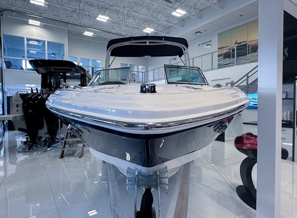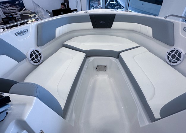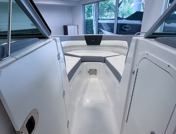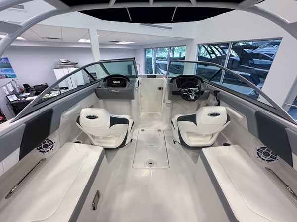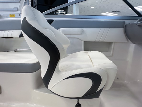 The 2024 Chaparral 23 SSi OB is a versatile and stylish 23-foot bowrider designed for both performance and comfort on the water. With a beam of 8’6″ and a dry weight of approximately 3,400 lbs, it offers ample space and stability for up to 13 passengers. The boat is powered by a single Yamaha F200XC 250 HP four-stroke outboard engine, ensuring quick planing and efficient cruising. Standard features include a 56-gallon fuel tank, a 70-quart built-in cooler under the rear bench seat, and a cockpit drainage system (CDS). The cockpit layout boasts two ultra-comfortable bucket seats with flip-up bolsters, U-shaped seating, and an aft hinged sundeck with walk-thru and lounge position.
