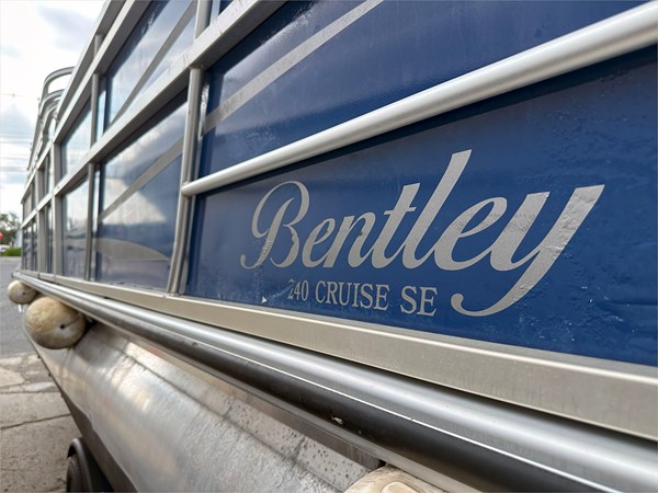 For sale: 2017 Encore Bentley 240 Cruise SE, a 24-foot power pontoon boat. Designed for leisurely cruising and family outings, this boat features plush seating, a Bimini top, and can accommodate up to 12 passengers. Some models include a 50 HP Mercury 4-stroke engine, ideal for cruising and light watersports.