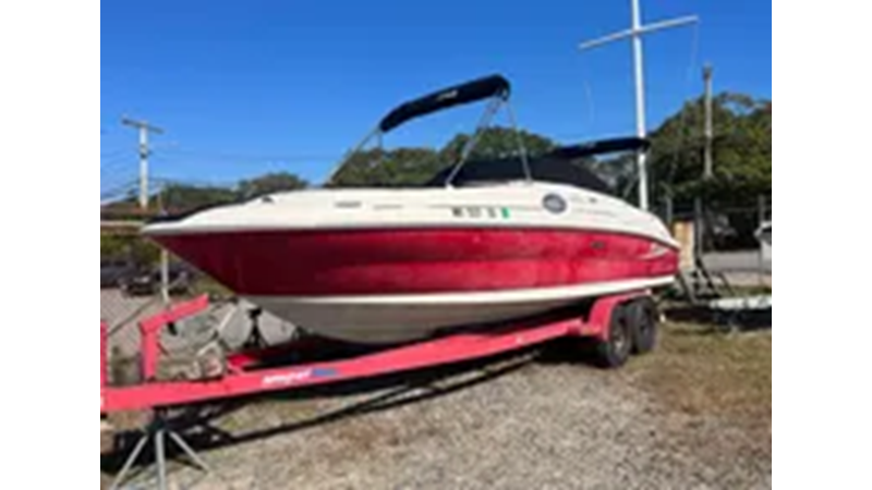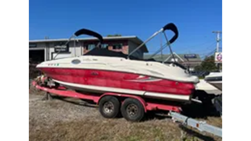 2005 240 Sea Ray SunDeck with Mercruiser 350 Magnum Bravo III 300 HP and Custom Bunk Trailer. Only 382 hours use, very well cared for and always professionally serviced boat. Loaded with options, Garmin 7405 GPS/Plotter, VHF Radio, Clarion Stereo, Bow and transom boarding ladders, Forward and Aft Bimini Tops, Bow & Cockpit Covers, Fresh water system with bow & stern sprayers, Potti with deck syphon. Boat shows very well, Gelcoat and Cushions in very good shape for this vintage boat! The 260 SunDeck has always been one of Sea Ray’s most popular bow riders ever built. Priced to sell!