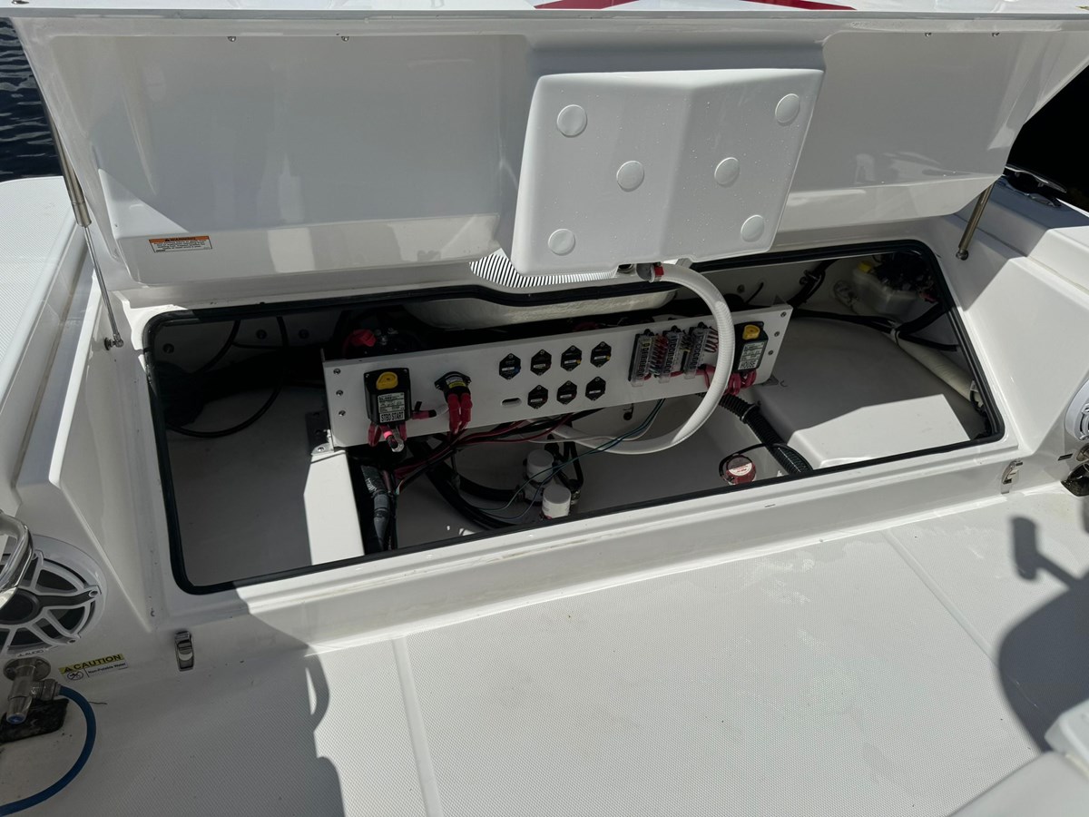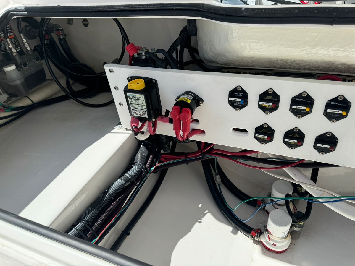 The 400 HP Mercury V10 delivers exceptional speed, acceleration, and fuel efficiency, making it perfect for quickly reaching remote fishing spots or cruising at high speeds in open waters. The Everglades 253 features a spacious deck layout with ample storage, rod holders, and built-in cooler space, ensuring all your fishing and leisure needs are covered.